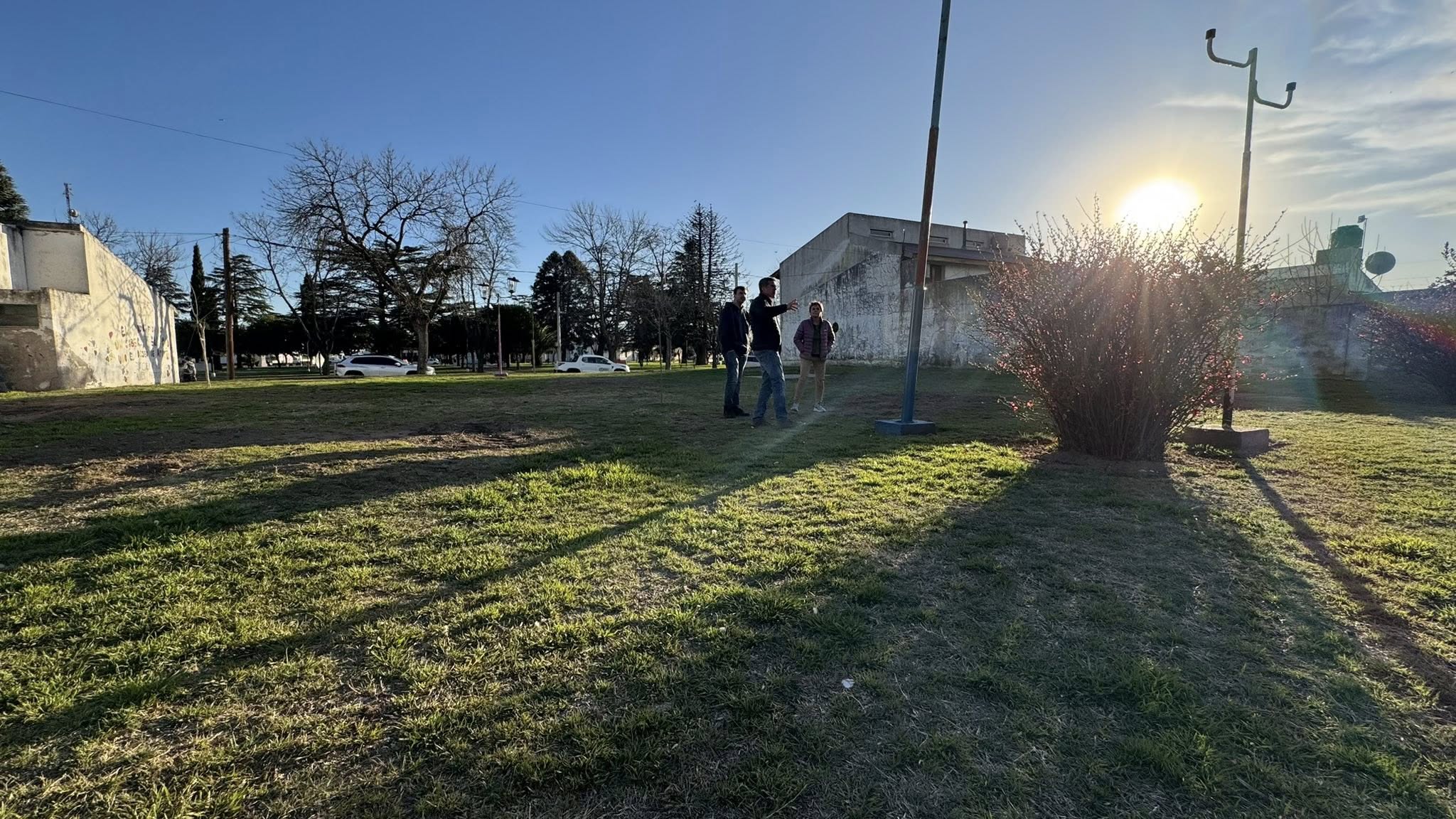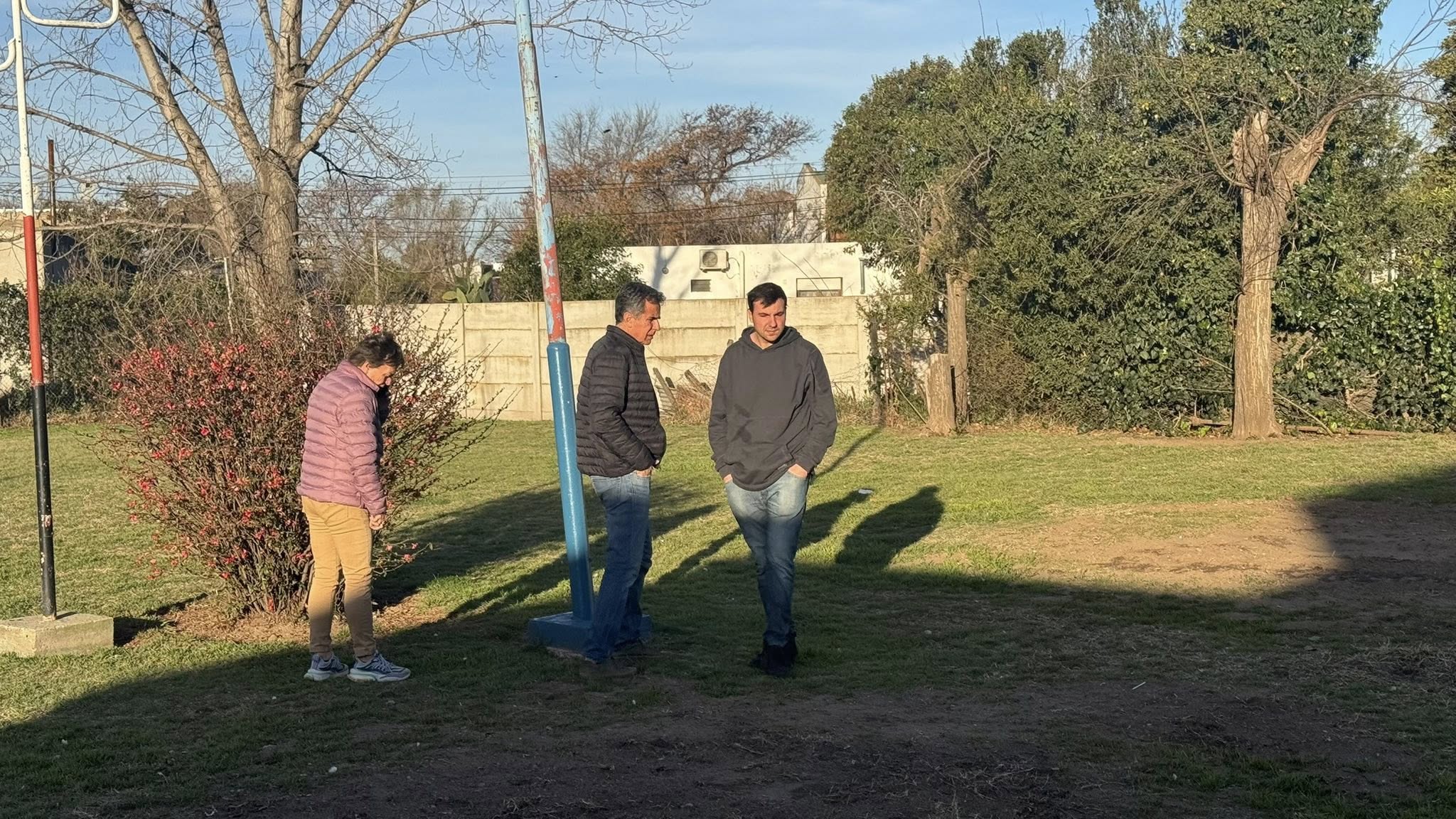 Martínez Junto a la Delegada de la localidad, Stella Kress, y el concejal Diego Pallero, recorrieron el pueblo y visitaron el terreno donde en los próximos días comenzará a renovarse totalmente la plaza.