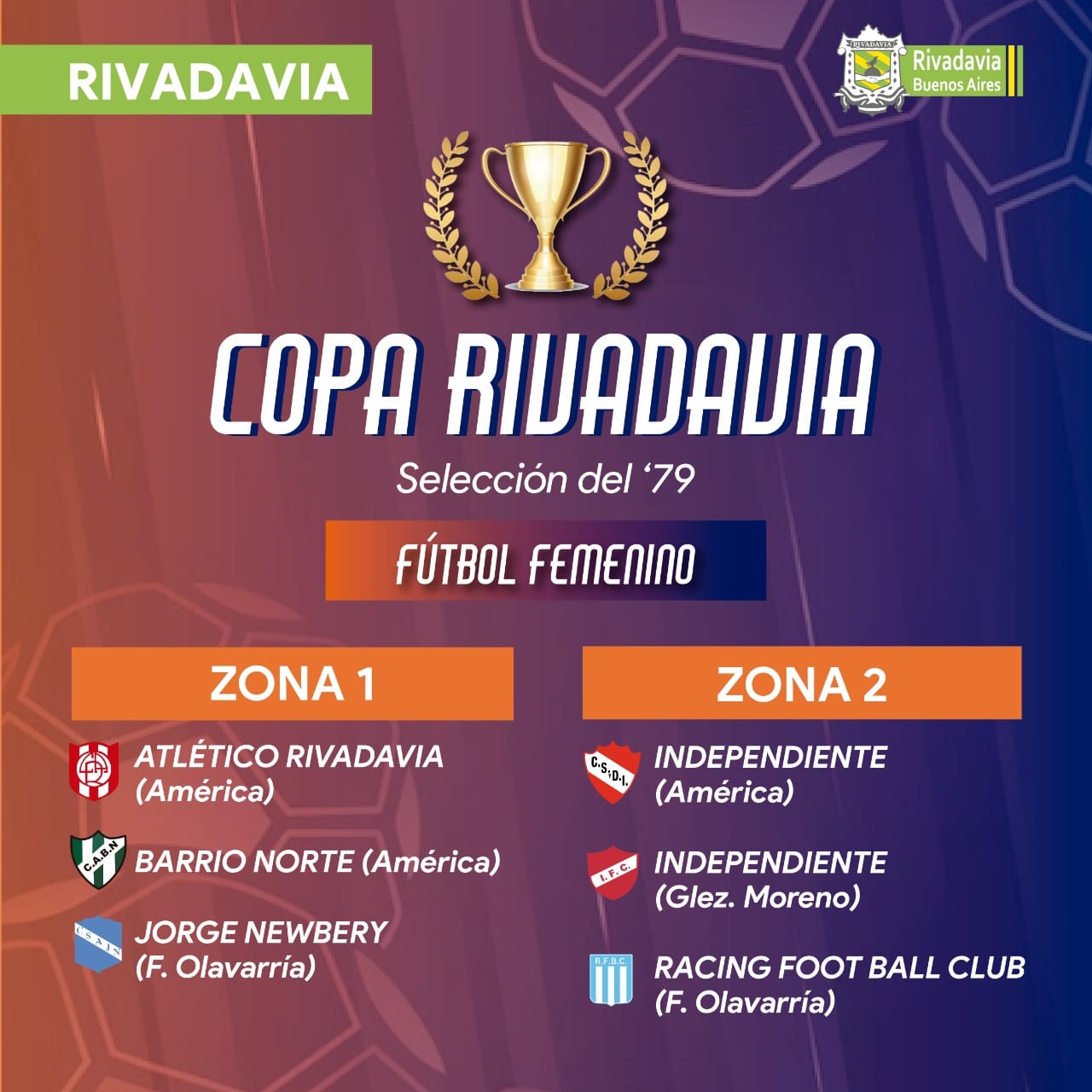 El pasado miércoles 26/1 se realizó el sorteo de las zonas de competencia de la Copa Rivadavia “Selección del 79´”. Estuvieron presentes el Intendente Municipal Interino, Joaquín Laxagueborde; el Secretario de Gobierno, Juan Aranguez; el Director de Deportes, Damián Morales; autoridades de la Liga del Oeste; y representantes de cada uno de los clubes participantes.