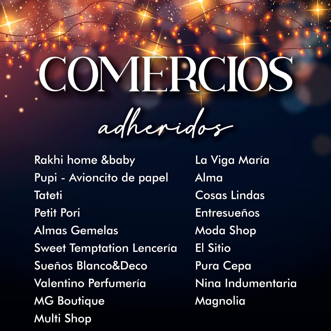 El domingo 19/12 de 19 a 22 hs. todos los comercios adheridos mantendrán sus puertas abiertas para ofrecerte los mejores regalos para estas Fiestas ??, y con un 20% de descuento ‼️(con la compra además participas de un sorteo espectacular ?).