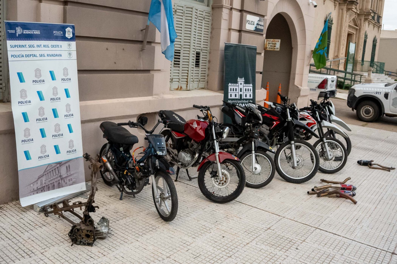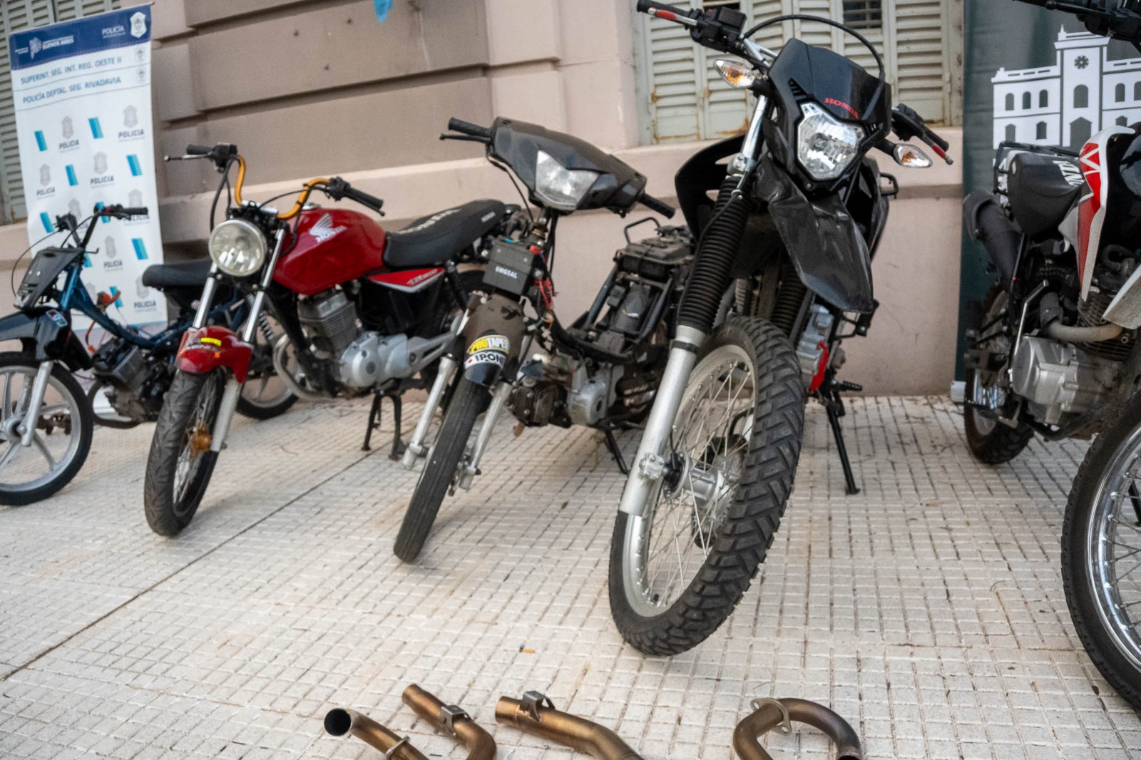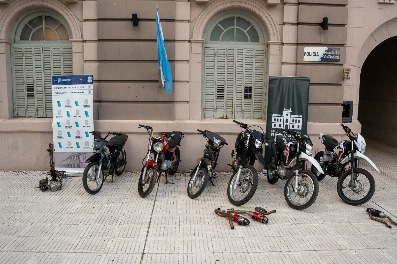 Personal de la Comisaría de Rivadavia, juntamente con Guardia Urbana Municipal y colaboración de los Destacamentos Policiales del Partido de Rivadavia, dieron cumplimiento a órdenes de allanamientos en simultáneo, otorgadas por el Juzgado de Faltas Municipal, a cargo del doctor Alejandro Belfiori . Fueron 6 los motovehículos secuestrados.