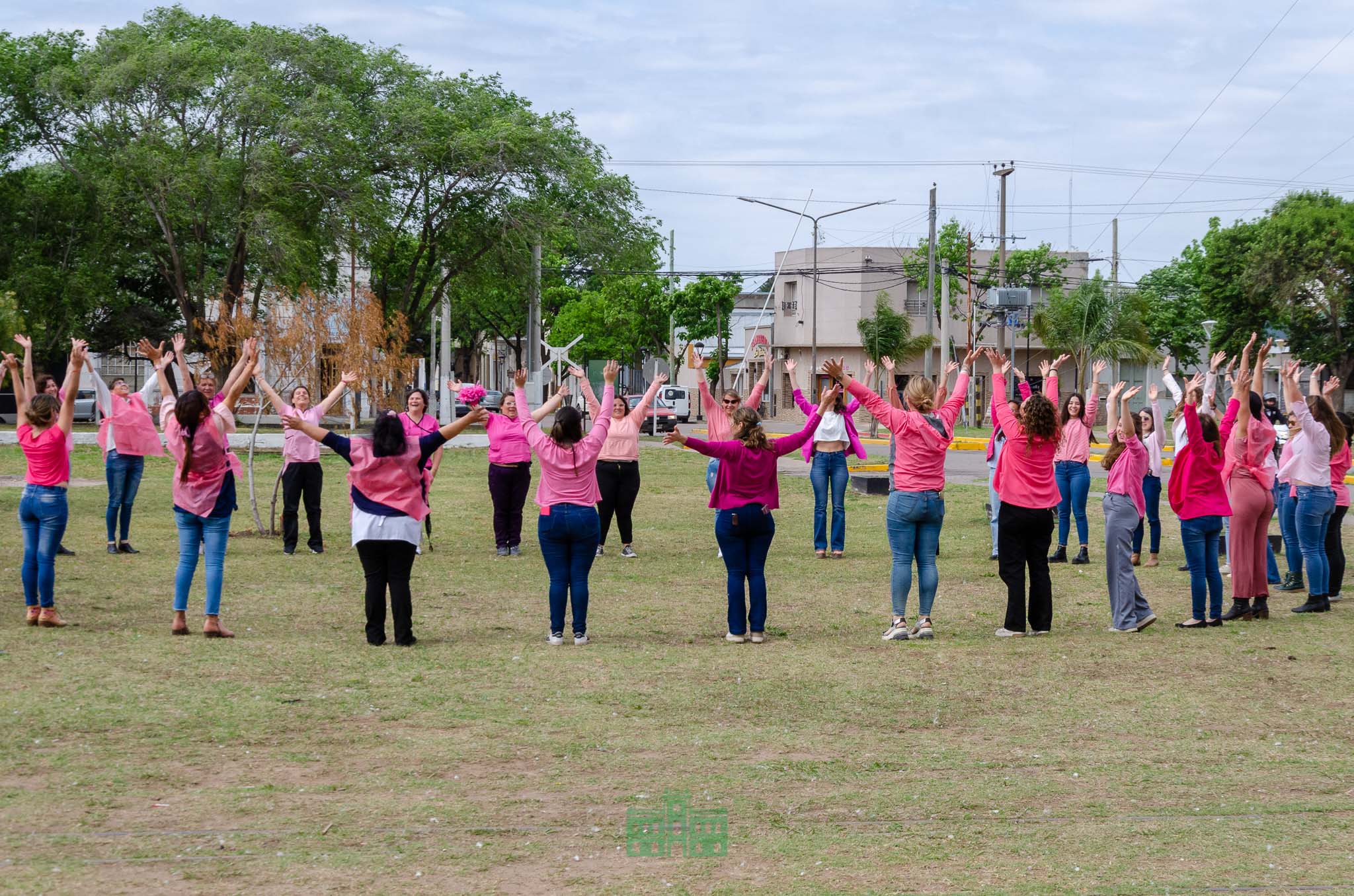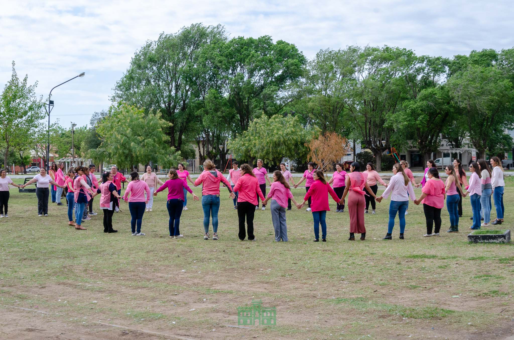 🎀 Sumando acciones en el Mes de la Concientización sobre el Cáncer de Mama, personal femenino de la Municipalidad de Rivadavia realizó un lazo rosa humano, símbolo de solidaridad y apoyo a quienes padecen cáncer de mama.