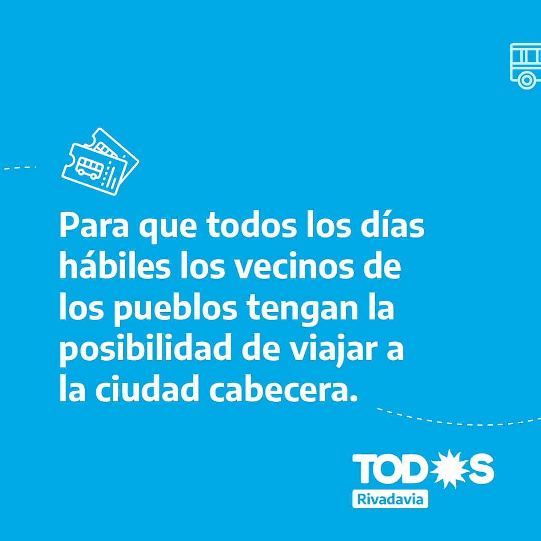 El Frente de Todos Somos Rivadavia impulsa un plan con recorridos que permita que todos los días hábiles los vecinos de los pueblos tengan la posibilidad de viajar a la ciudad cabecera para realizar trámites, acceder a atención médica, continuar con sus estudios o visitar a sus familiares y amigos