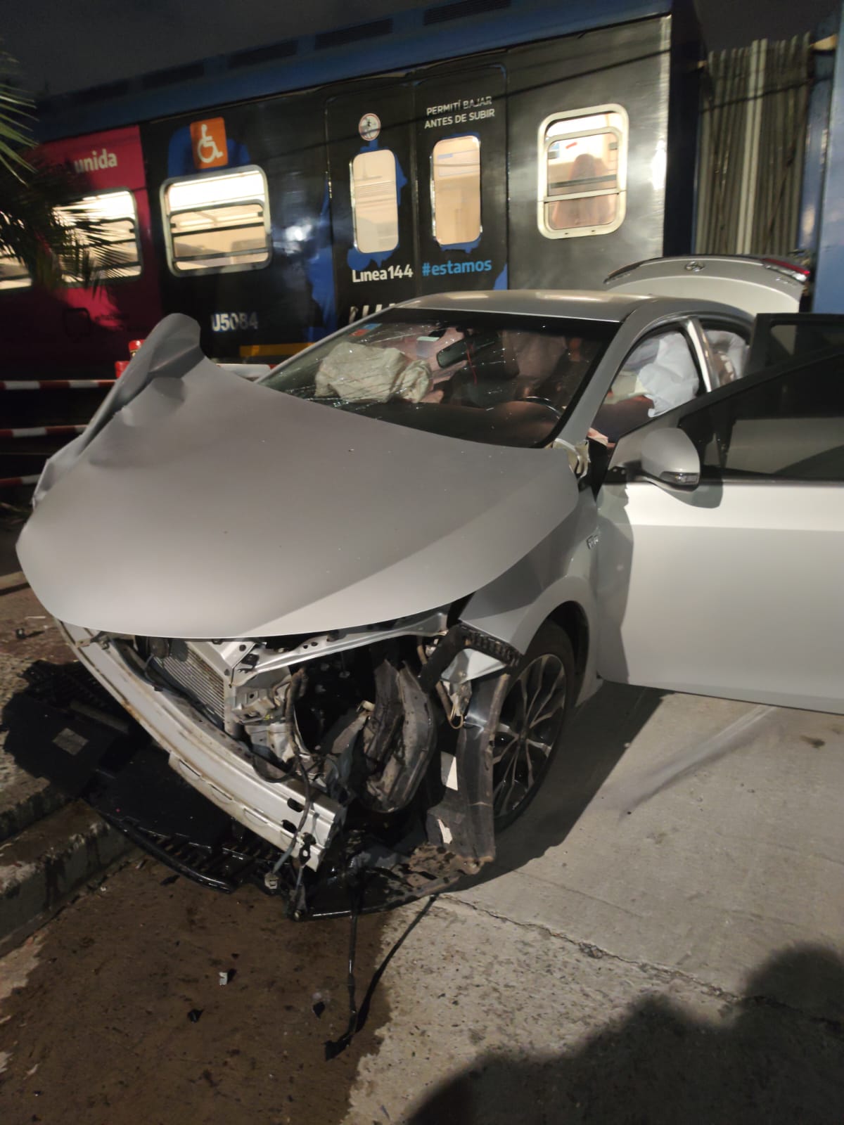 La formación del tren San Martín nos había impactado en el lateral derecho del auto y eso hizo que el Toyota girara y quedará incrustado contra las defensas que hay en el paso a nivel para que por allí pasen las personas. Totalmente destruido había quedado pero antes de eso nuestro auto hizo algo que siempre le vamos a agradecer, nada más ni nada menos que salvarnos la vida a los cinco. Los sistemas de seguridad con que cuenta la línea Corolla hicieron que hoy podamos estar vivos porque funcionaron a la perfección, airbags delanteros, laterales en las puertas y en el techo además de la seguridad que tiene en el habitáculo y que lo hace muy fuerte y seguro. Todo eso sumado nos salvó.