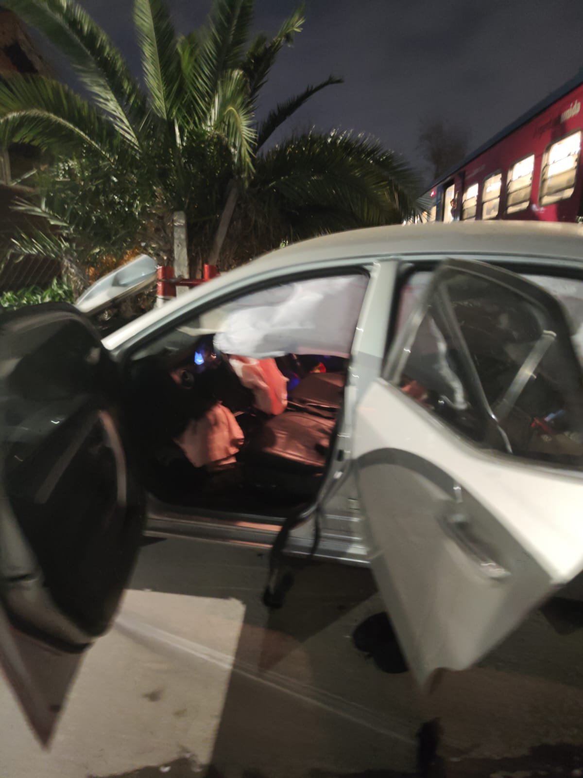 Salimos del Salón de Fiestas en el cual se realizó el cumple y el GPS del automóvil nos mandó una calle que tiene un paso a nivel convencional (algunas ya están hechos bajó a niveltipo subterraneos )… cuando llegamos a ese lugar no vimos la barrera o el señalamiento que anticipaba el paso de la formación ferroviaria y es ahí cuando el tren nos impacta.