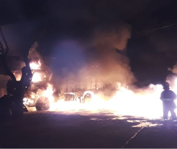 La empresa Misqui Hue propiedad de la familia Vicent sufrió en la madrugada del domingo un incendio de proporciones que dejó un vehículo completamente destruido.