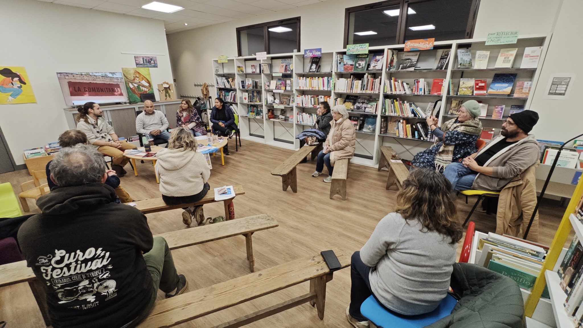 En la Mediateca de la Cazéres sur Adour compartimos nuestra experiencia como parte del Movimiento Latinoamericano y argentino de cultura viva comunitaria y de la Federación Rural para la Producción y el Arraigo, con una red de artistas de distintas localidades de Los Landes, autoridades de cultura regional y vecinos en general. Fue una oportunidad de conocer la realidad artística y las problemáticas comunes.