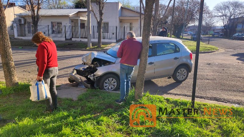 El siniestro vial ocurrio cerca de las 17.30 horas en la esquina de España y Lavalle donde un auto manejado por una mujer y una moto con un joven al volante colisionaron. El auto terminó pegando violentamente contra una planta de la acera.
