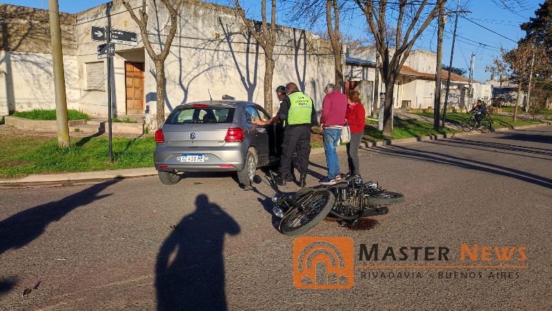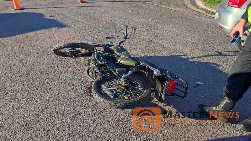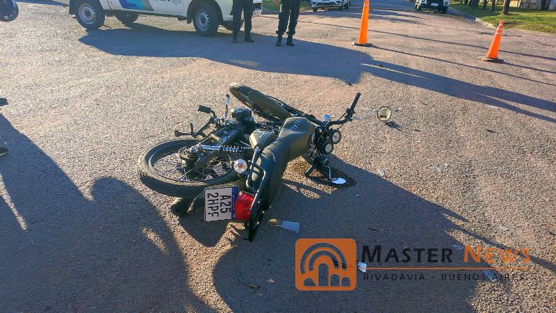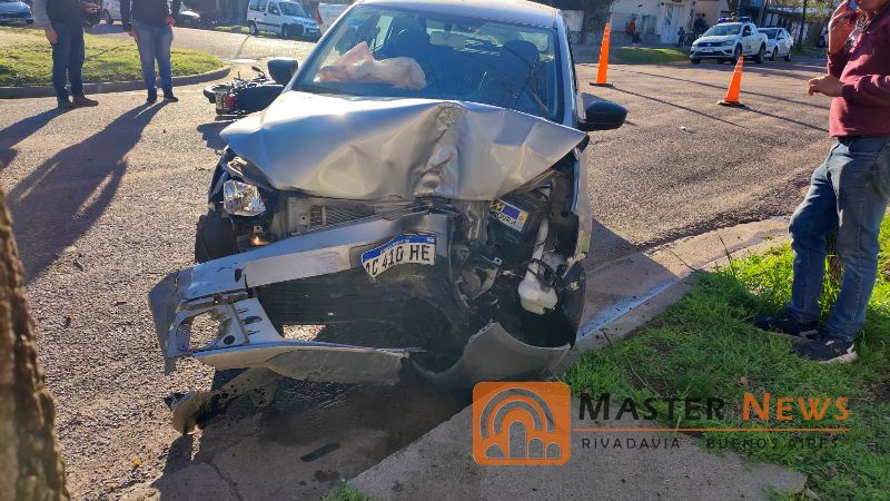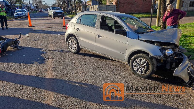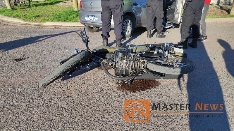 Cerca de las 17:30 horas un VW Gol que se trasladaba por calle Lavalle en sentido norte-sur de la ciudad impacto contra una moto Siam 150 cm que era manejada por un joven y transitaba calle España en seentido oeste-este del casco urbano.