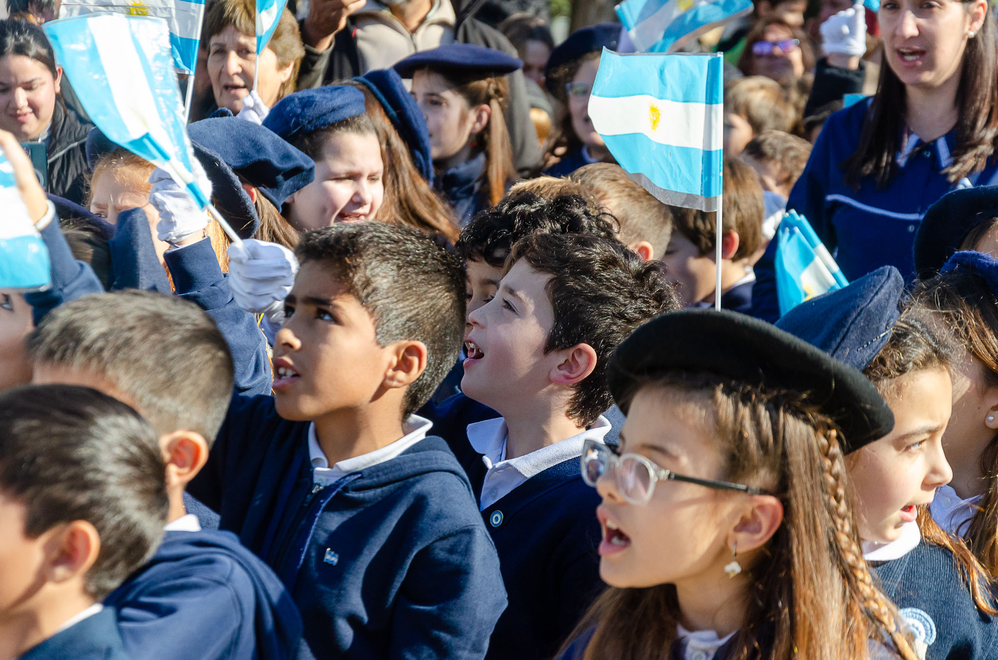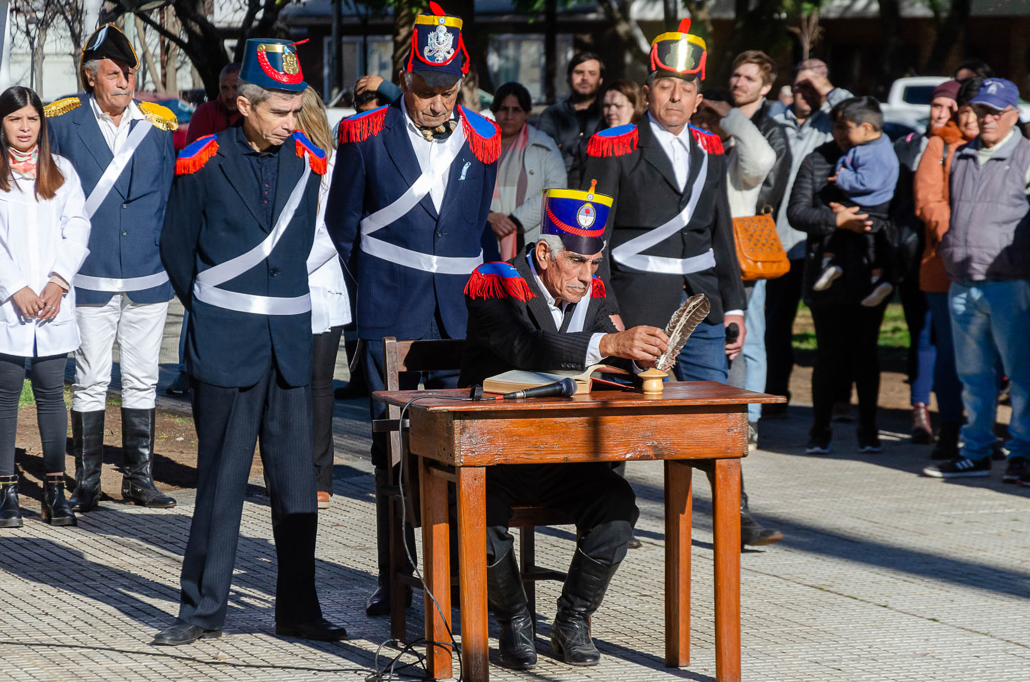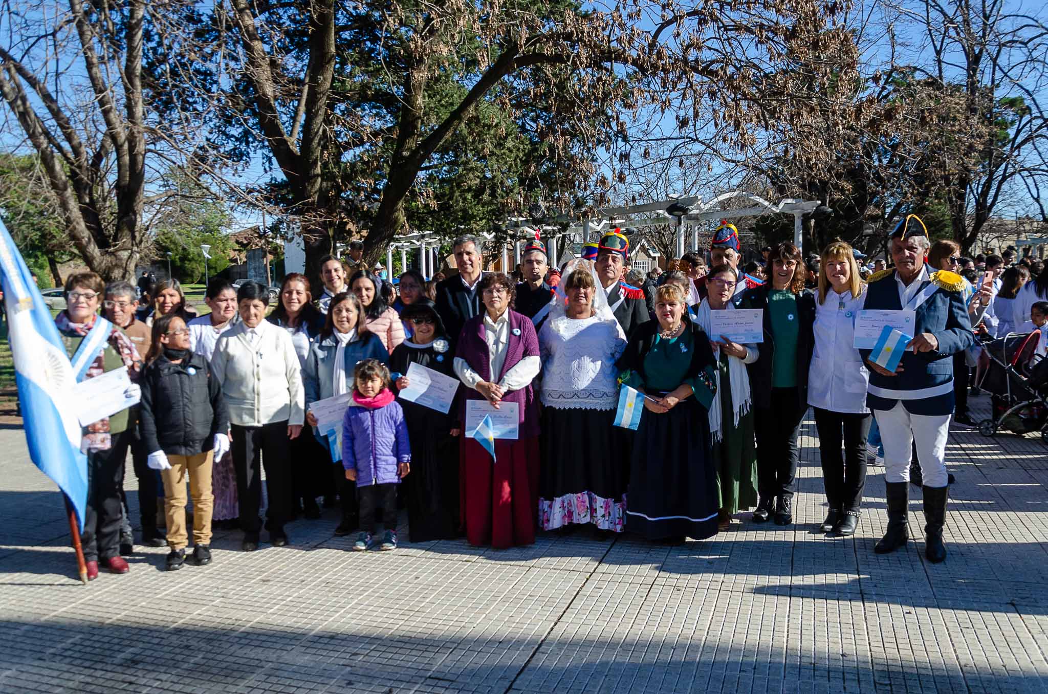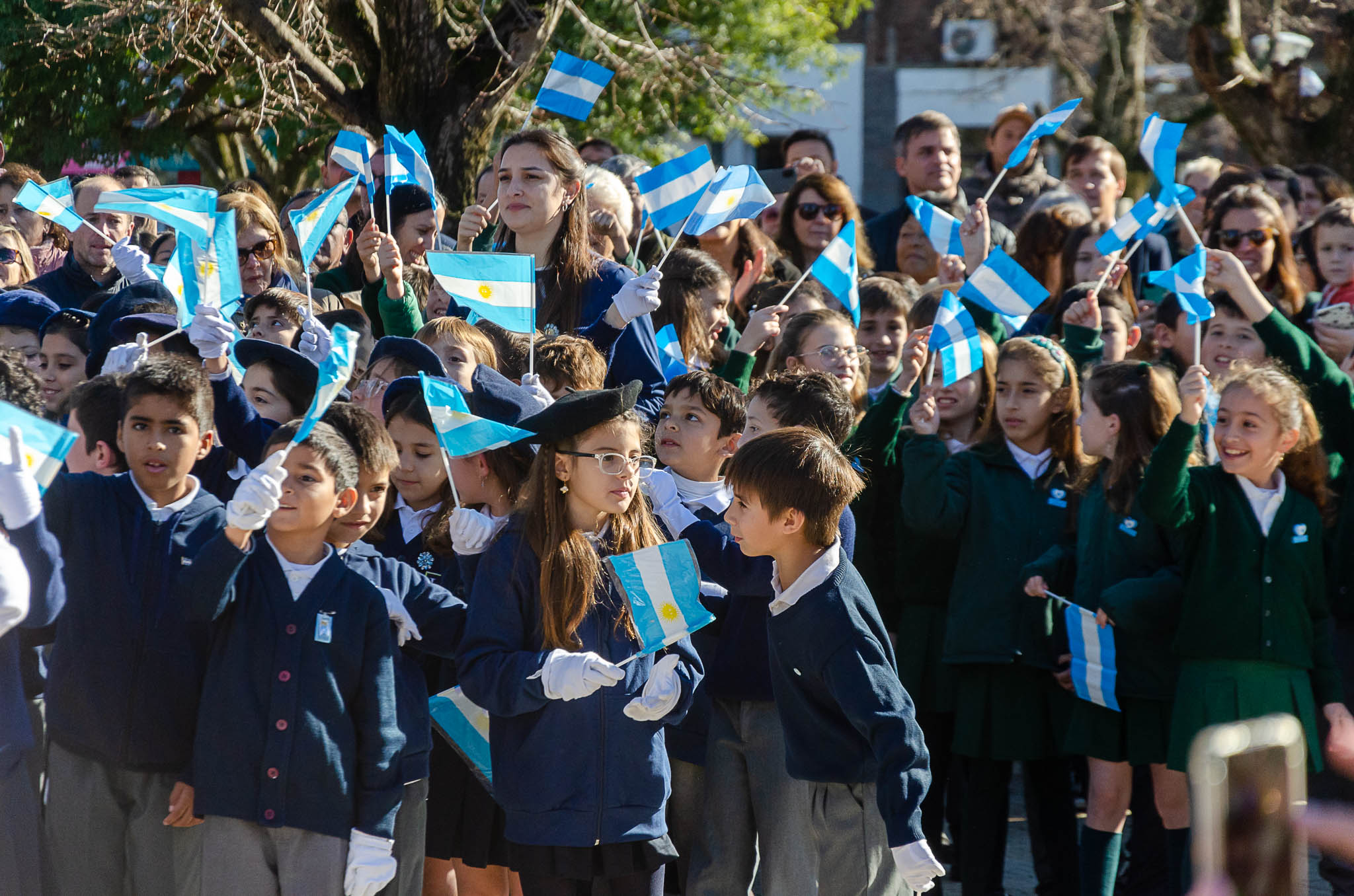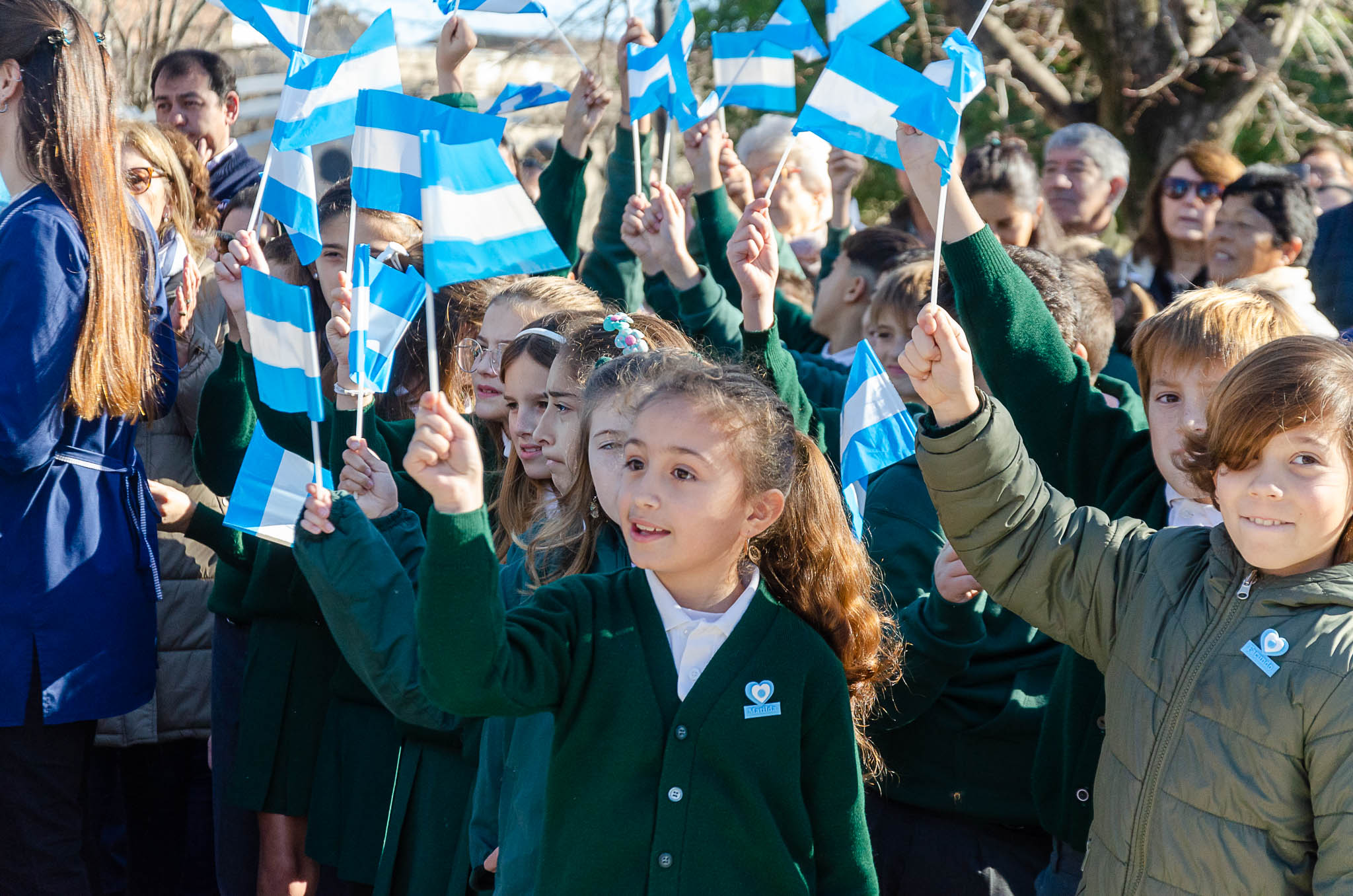 Luego de que las autoridades trasladen la enseña patria al mastil central y se realice el izamiento se entonaron las estrofas del Himno Nacional Argentino. Se procedió a depositar una ofrenda floral por parte del Intendente Juanci Martínez, el Pte. del HCD Jorge Pablo Rosolen, la Inspectora Jefe Distrital Marta Cucurull y la Pte. del Consejo Escolar Daniela Vásquez.