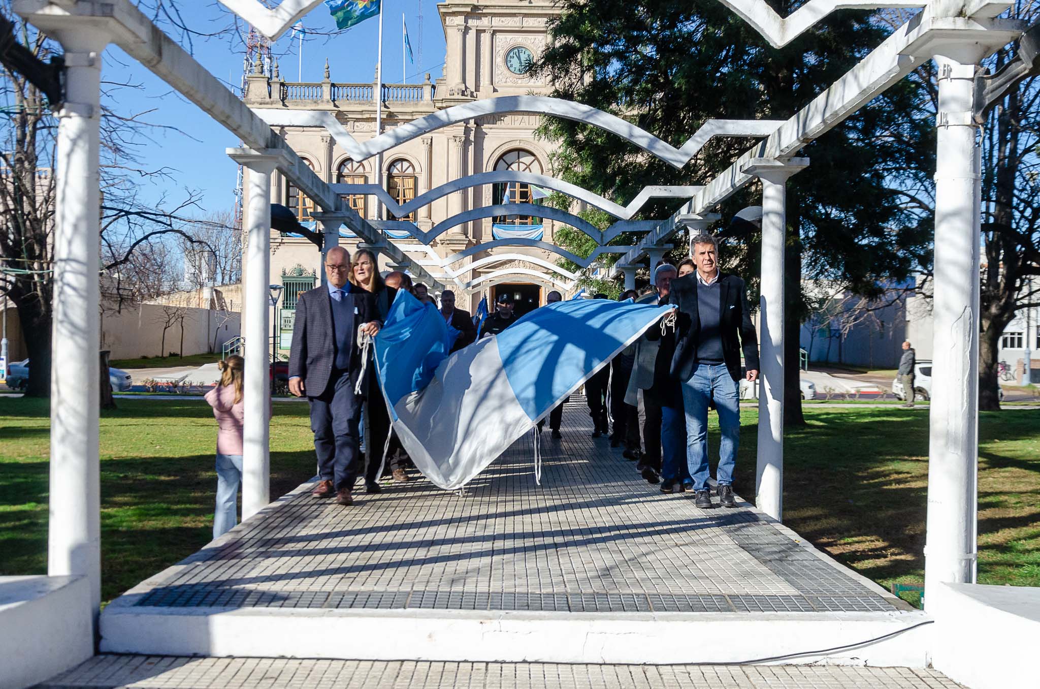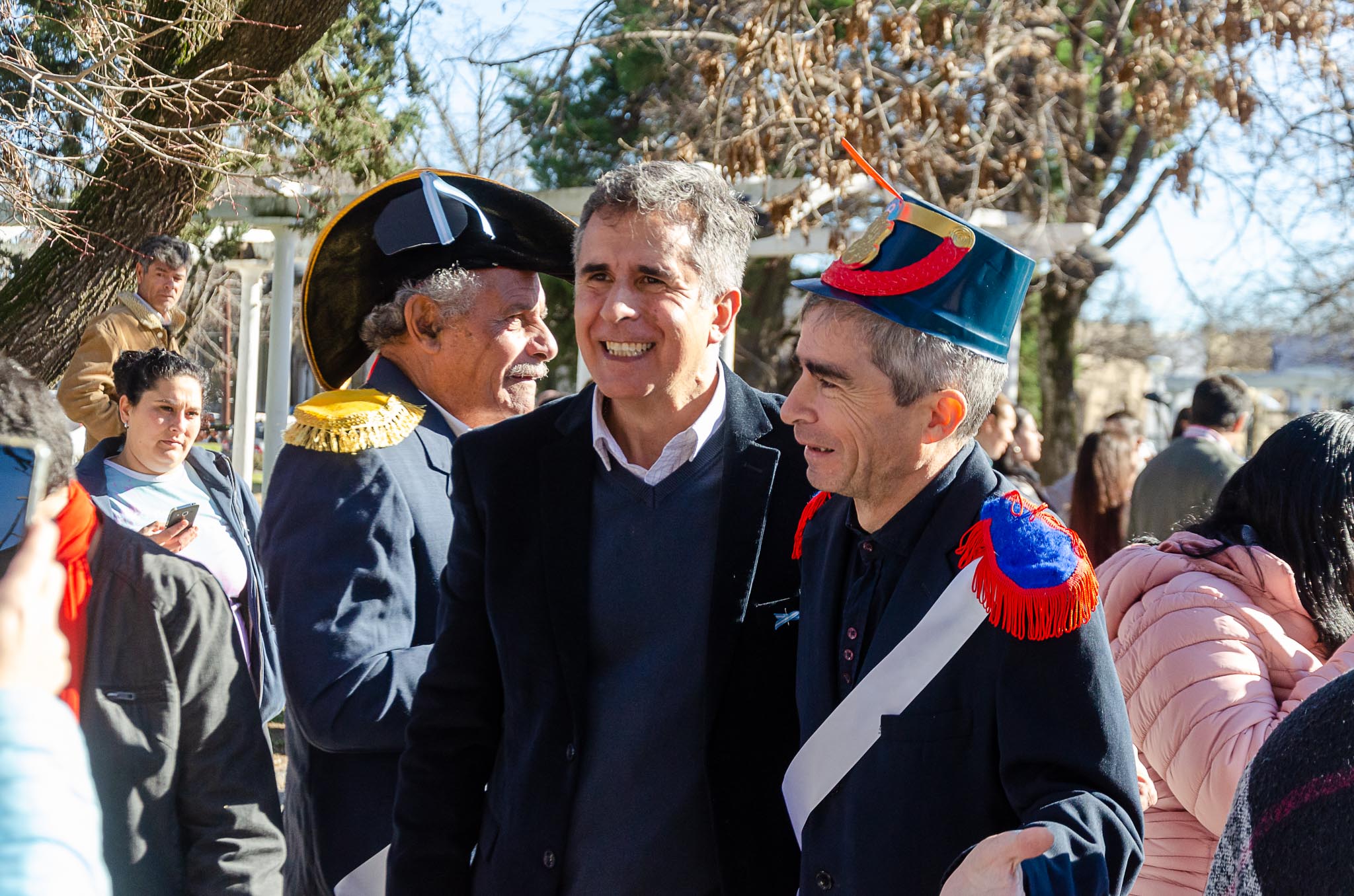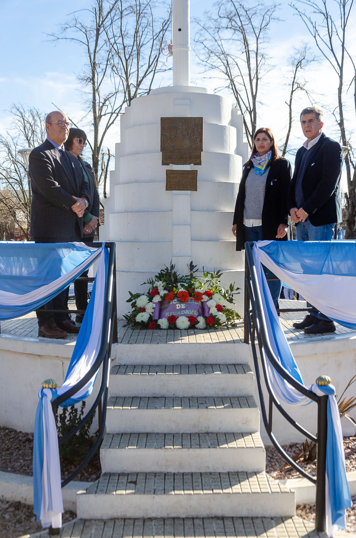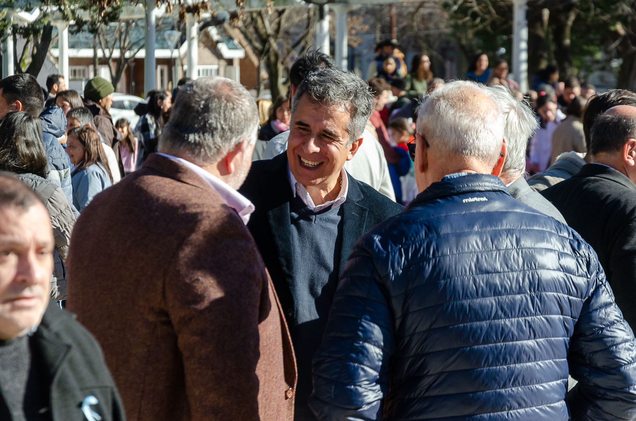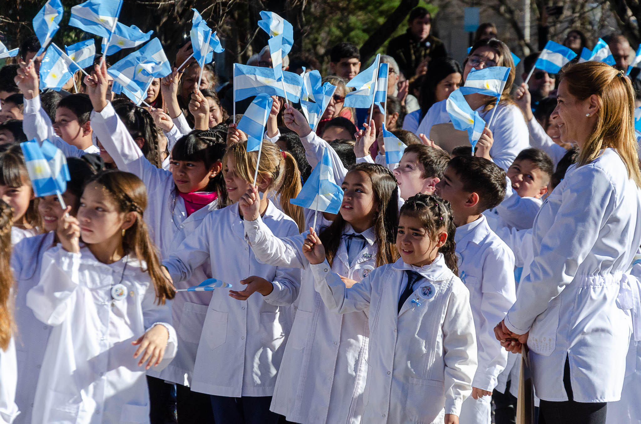 Luego de que las autoridades trasladen la enseña patria al mastil central y se realice el izamiento se entonaron las estrofas del Himno Nacional Argentino. Se procedió a depositar una ofrenda floral por parte del Intendente Juanci Martínez, el Pte. del HCD Jorge Pablo Rosolen, la Inspectora Jefe Distrital Marta Cucurull y la Pte. del Consejo Escolar Daniela Vásquez.