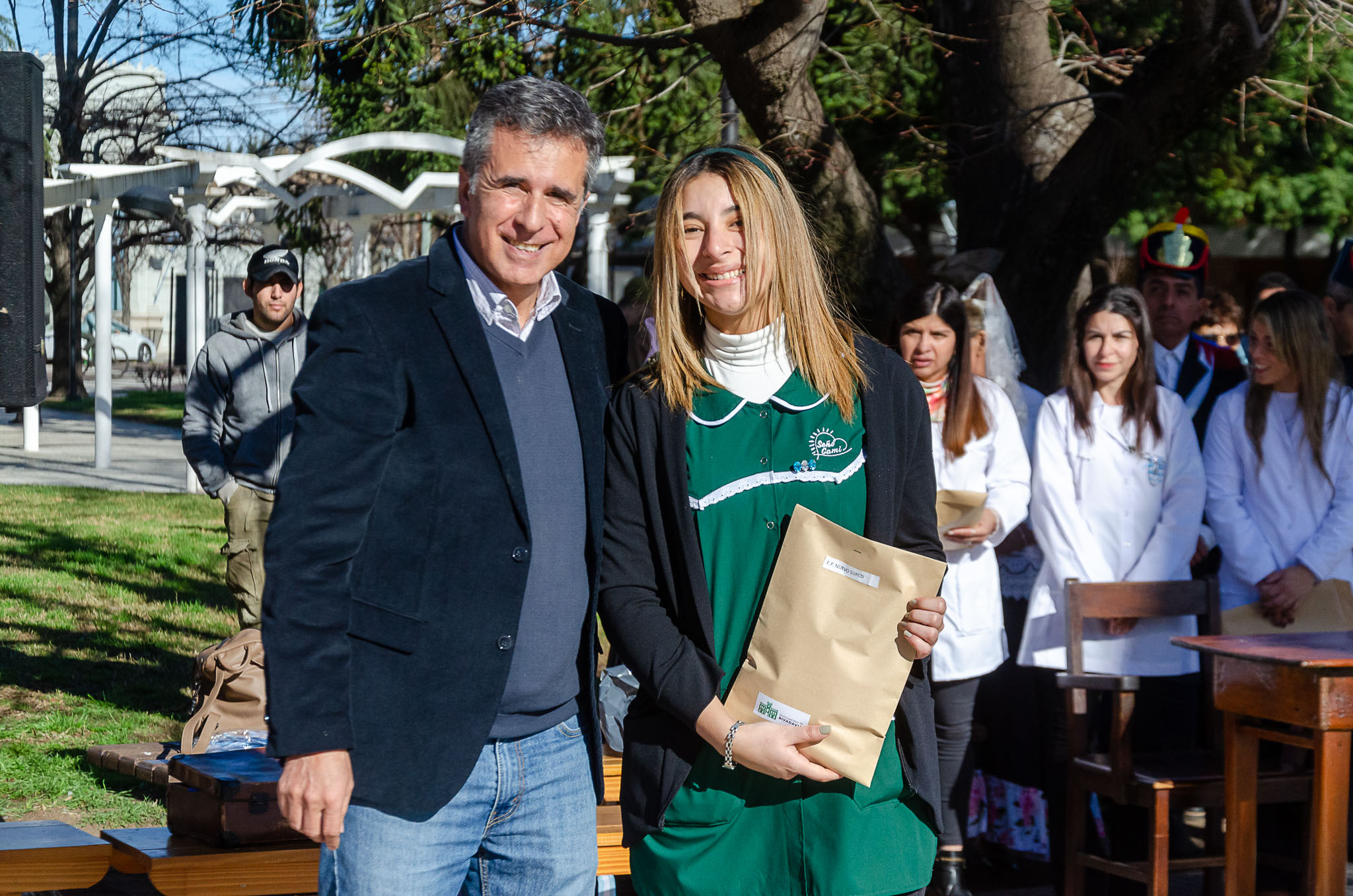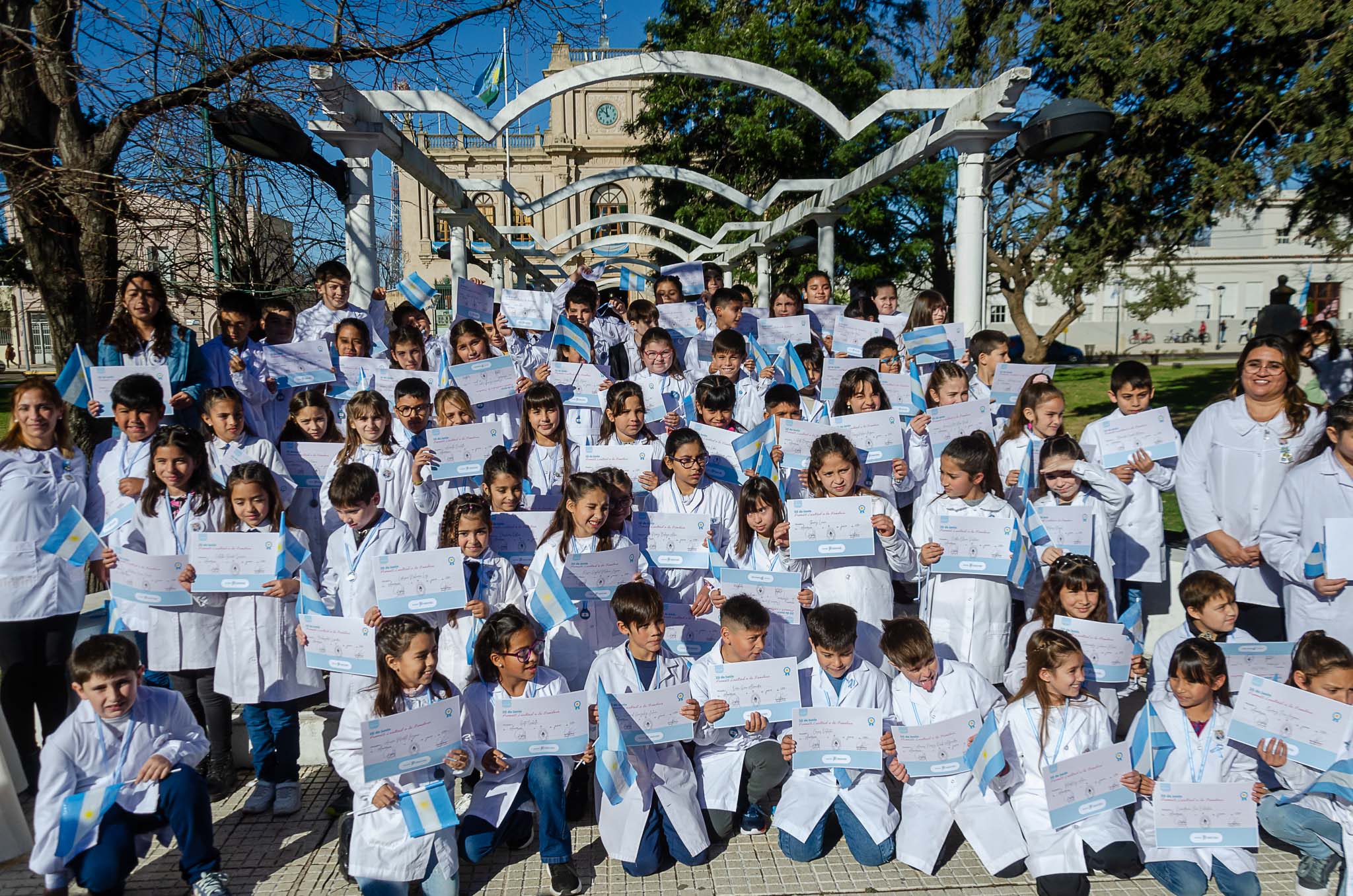 Cada alumno recibió de manos de sus docentes el diploma de honor que conmemora lo vivido y desde el municipio, Intendente y funcionarios entregaron un presente a cada niño que consistió en un llavero con los colores de la bandera argentina.