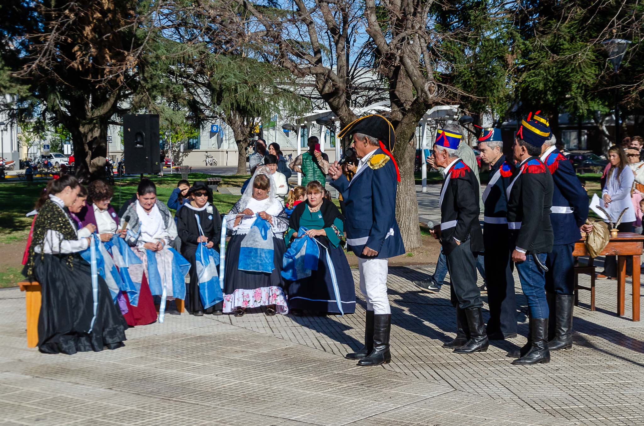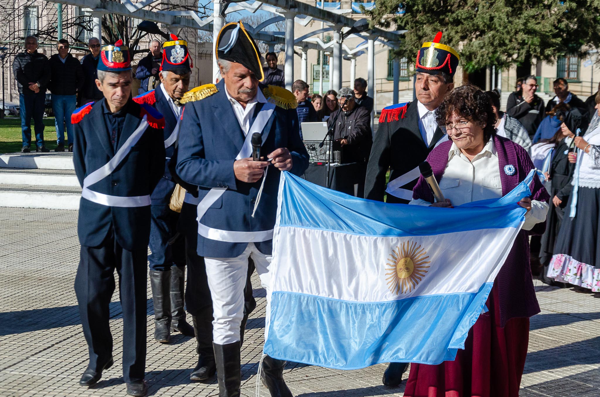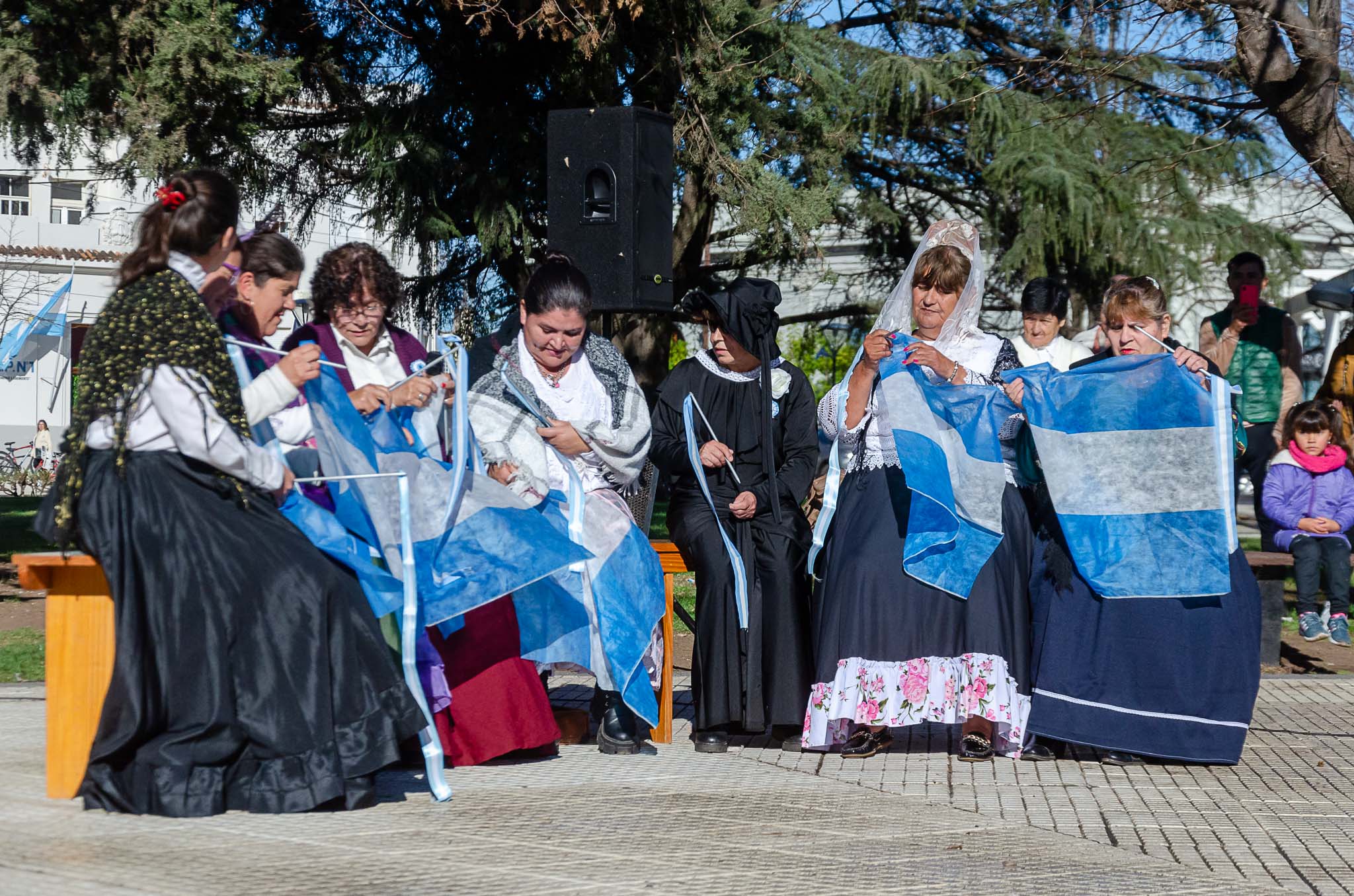 Seguidamente alumnos de la Escuela Primaria de Adultos 701, institución encargada de organizar el acto, presentaron una puesta en escena diagramada y dirigida por la Prof. Luciana Maggioni sobre la creación de la bandera que se llevó todos los aplausos.