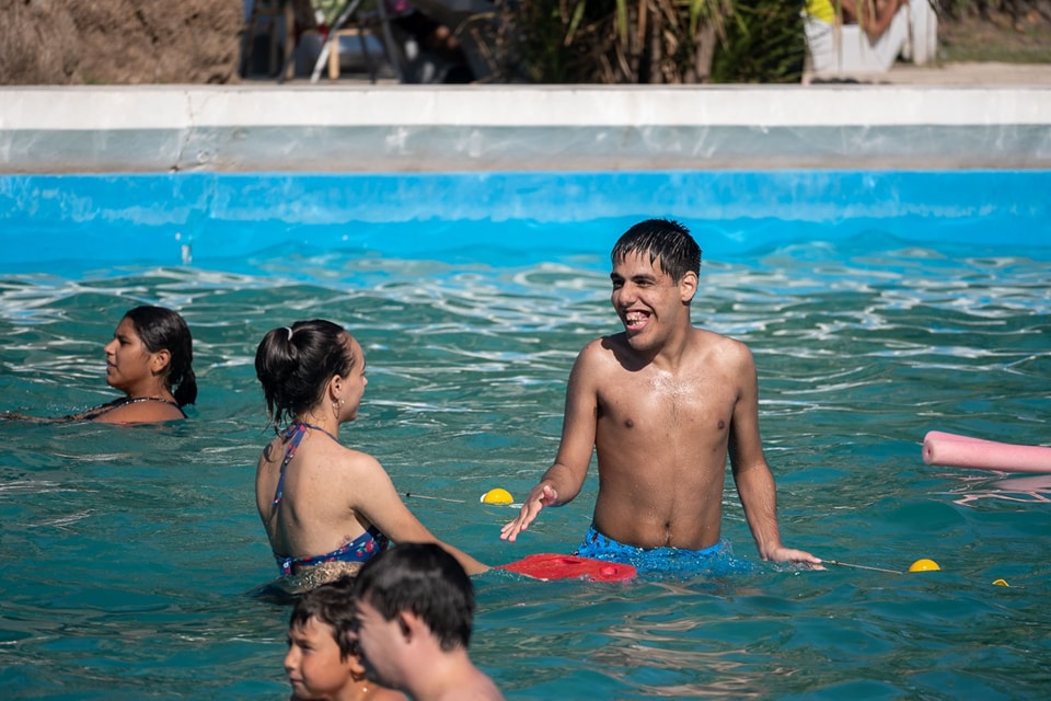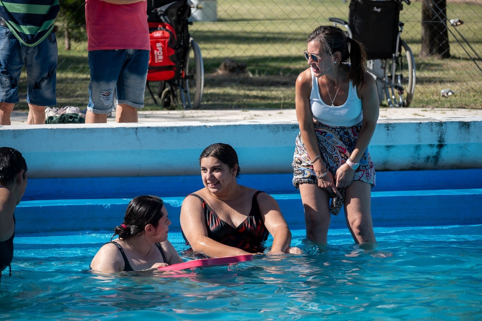 🌞🏊♀️La intendenta interina Josefina Pérez Vítores, junto al secretario privado Cristian Barcelo, visitaron la Colonia de Verano para Personas con Discapacidad en el Parque Municipal 17 de Octubre.