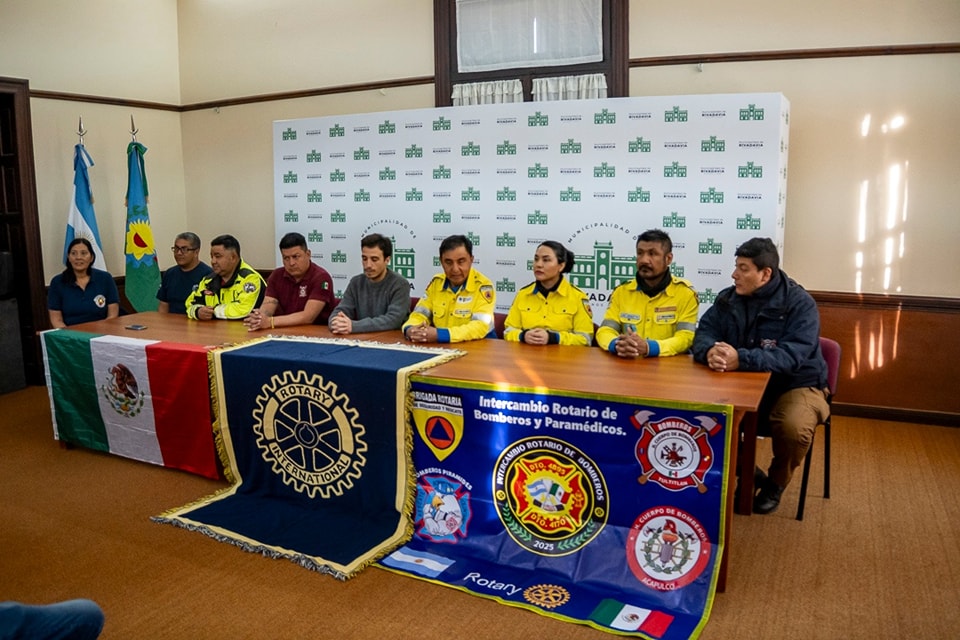 En el marco del “Programa de intercambio de profesionales”, promovido por Rotary International, autoridades del Gobierno municipal encabezadas por el Secretario de Gobierno, Sebastián Hernández, el Director de Guardia Urbana y Defensa Civil, Eduardo Petitot, y la participación del concejal Héctor García, recibieron a una comitiva de Bomberos y paramédicos de distintas ciudades de México, junto a Santiago Després, Luis Eduardo Busso y Mercedes Giménez, del Rotary Club de Rivadavia y Bomberos Voluntarios del distrito.