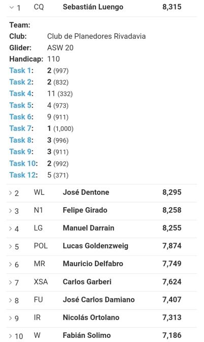 Tanto Sebastián Luengo que luego terminaría consagrándose Campeón como Carlos Cucurull y Miguel Boero que compitieron en clase STD tuvieron muy buenos vuelos llegando incluso a ganar varios días la clasificación en la prueba diaria.