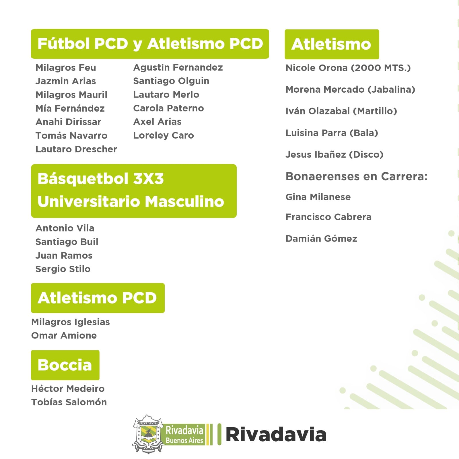 Entre el viernes 15 y el miércoles 20 de septiembre se desarrollará la Etapa Final de los Juegos Bonaerenses, en la ciudad de Mar del Plata, y Rivadavia estará representada con una delegación de más de 150 integrantes.