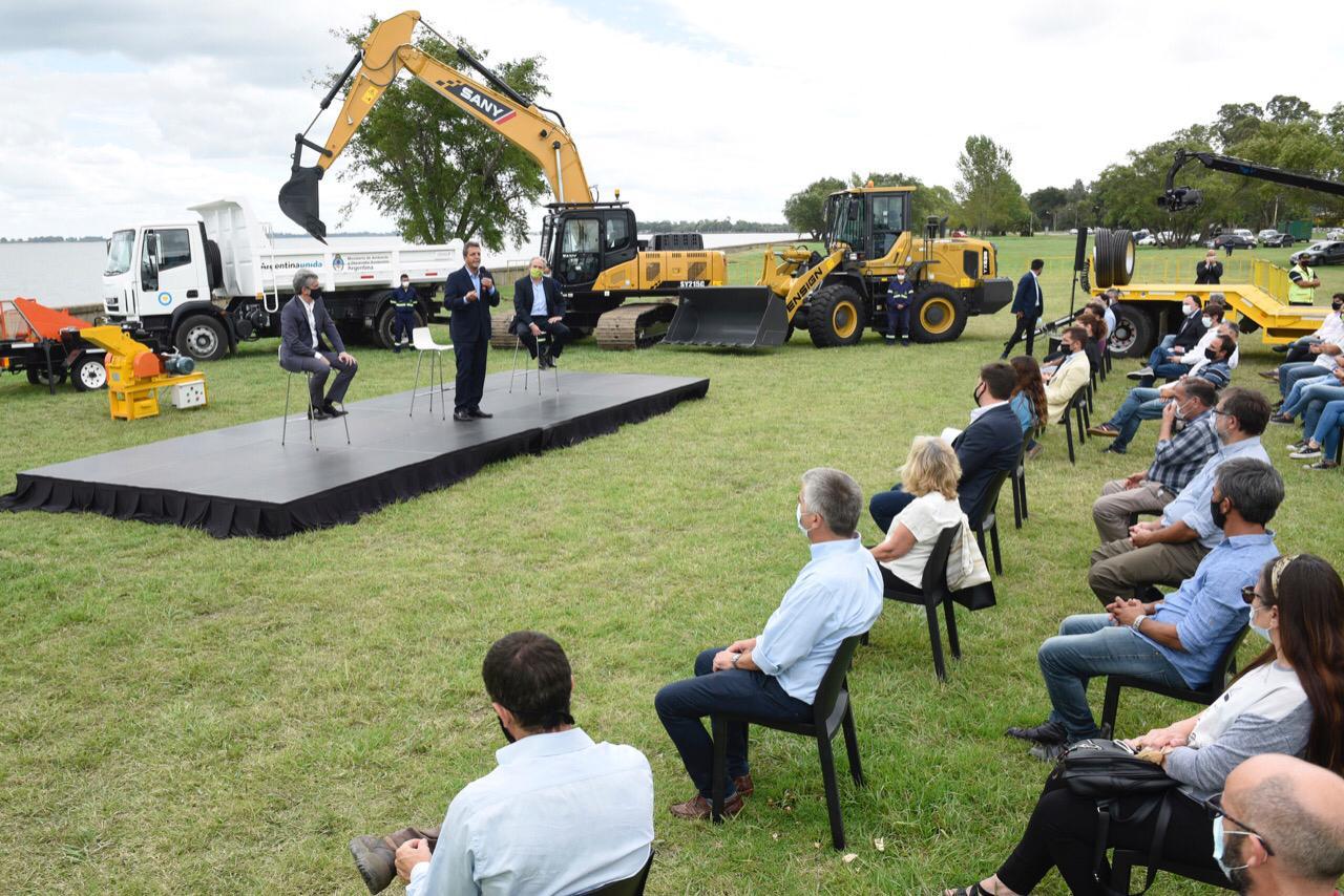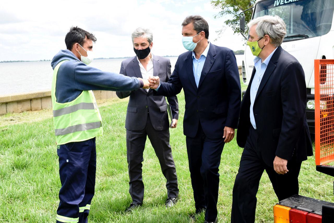 En Chascomús, Sergio Massa, Sergio Federovisky y el intendente Javier Gastón formalizaron la entrega de equipamiento para la erradicación del basural a cielo abierto y la construcción de un nuevo Ecoparque, iniciativa impulsada por el municipio y el Ministerio de Ambiente y Desarrollo Sostentible, que conduce Juan Cabandié.