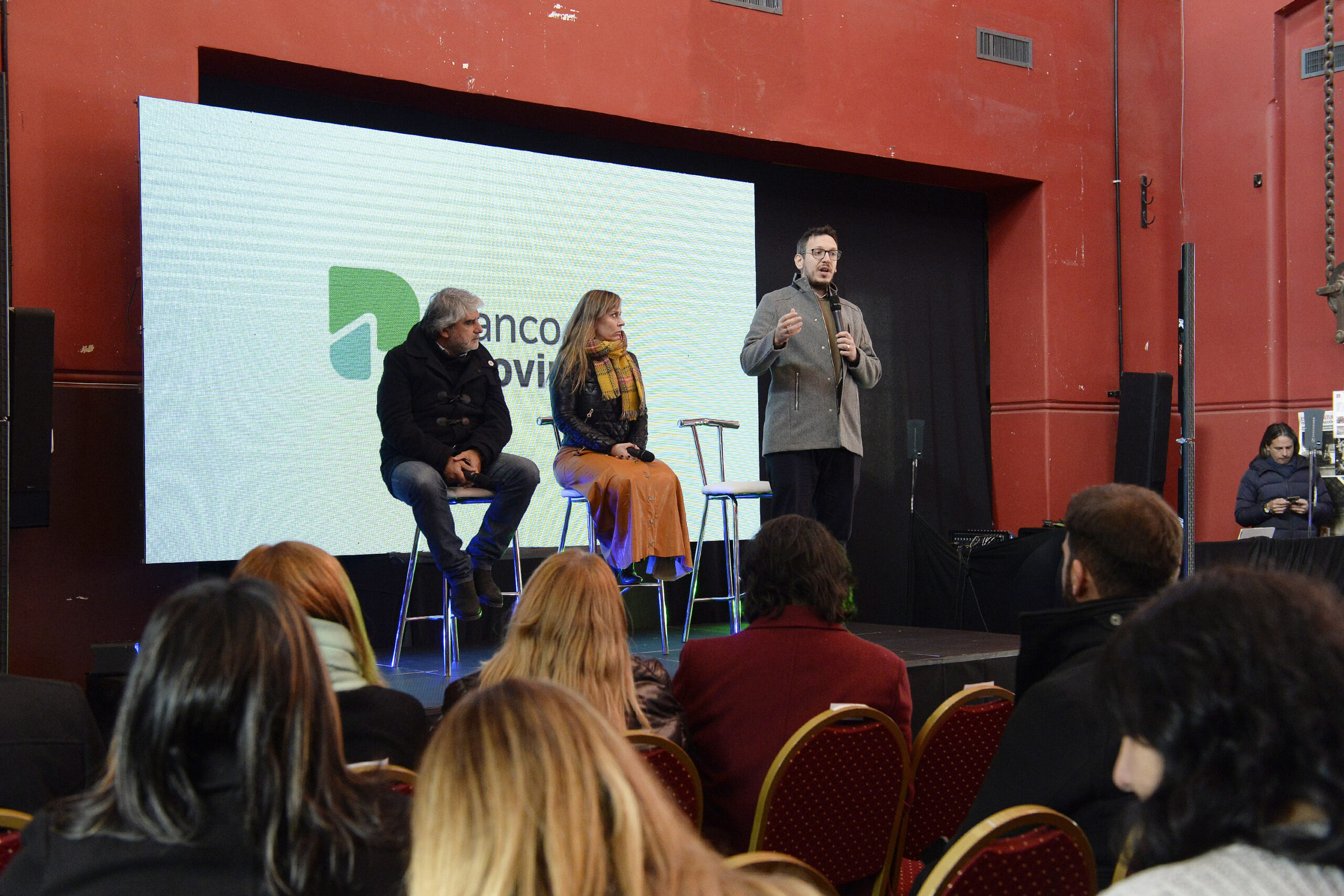 El presidente de Banco Provincia, Juan Cuattromo, encabezó la presentación de la línea de crédito en el Centro de Producción Audiovisual Leonardo Fabio en la localidad bonaerense de Bernal, junto a la intendenta de Quilmes Mayra Mendoza, la senadora nacional por la provincia de Buenos Aires, Juliana Di Tullio, el ministro de trabajo bonaerense, Walter Correa y la directora de Banco Provincia, Laura González.