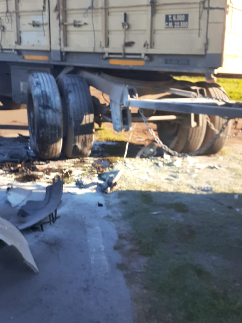 El siniestro se dio pasadas las 7.30 h de este lunes en ruta provincial 1, kilómetro 51, cercano a Trebolares. Allí un camión fue embestido por una Chevrolet Spin. Según se pudo conocer el choque se dio cuando el camión ingresaba a un predio rural y fue colisionado por la Chevrolet.
