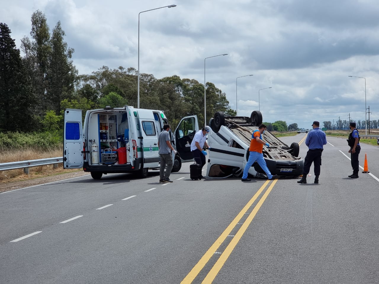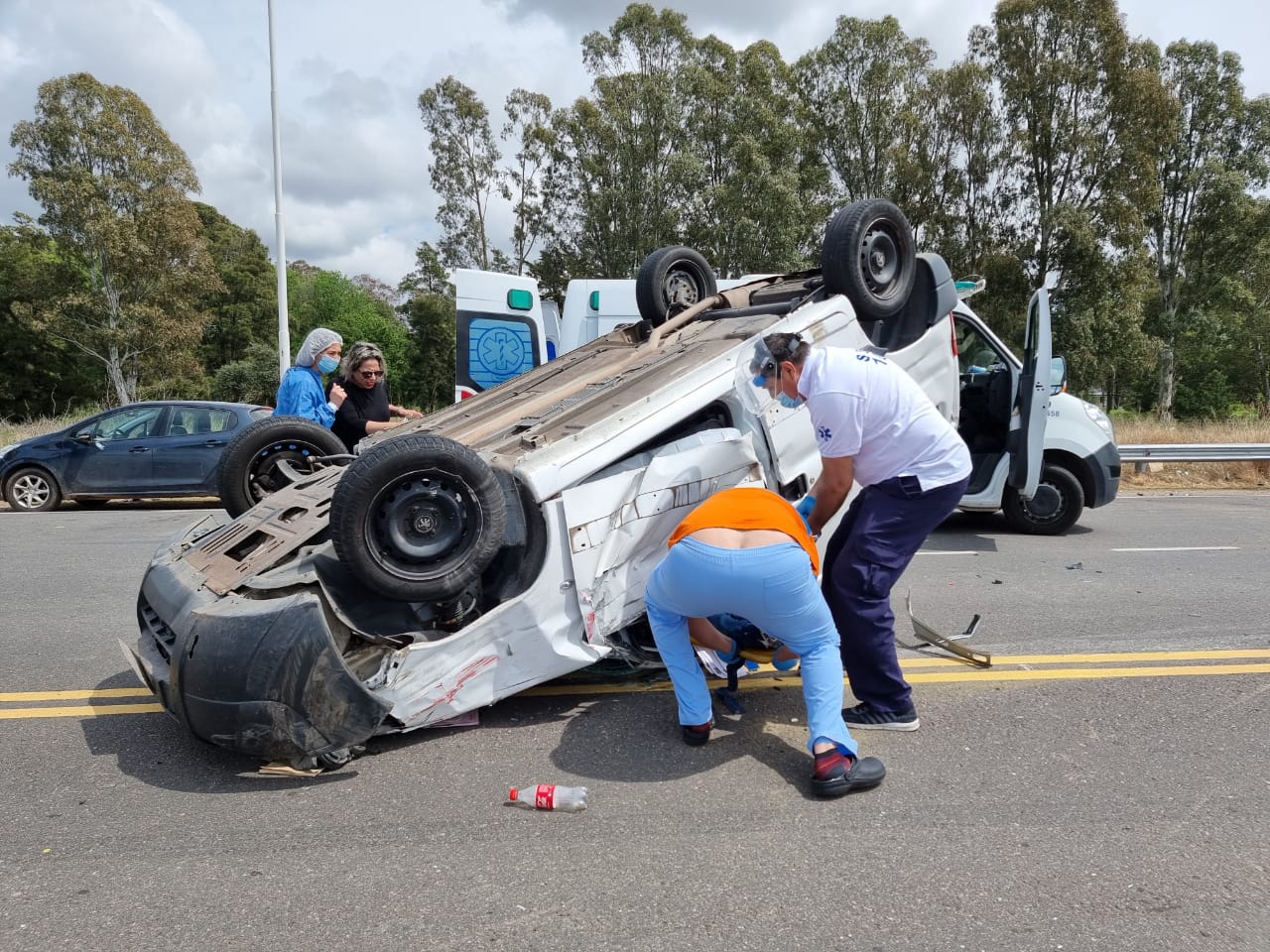 El siniestro ocurrió en el cruce de rutas 1 y 4 minutos después del mediodía. La colisión se produjo entre una Peugeot Partner y una camioneta F-100. Tras el impacto la Partner terminó volcando y arrastrando una diez metros sobre la cinta asfáltica para quedar en dirección opuesta a la que se dirigía.