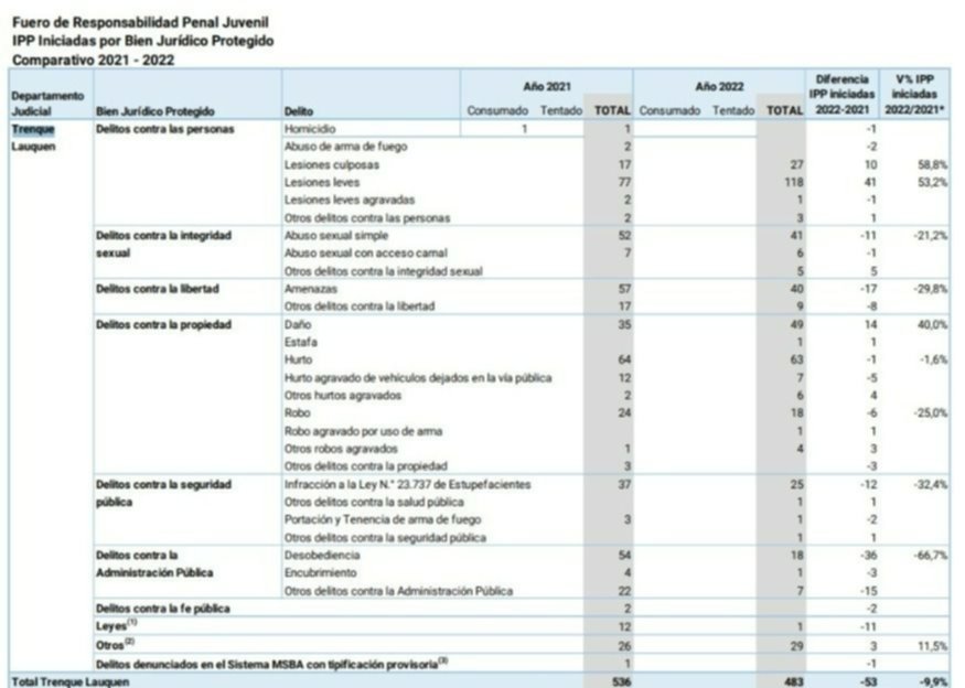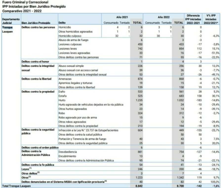 Y según datos oficiales, en este departamento judicial se registró una merma en ambos fueros: 1,6% en el Fuero Criminal y Correccional (FCC) y 9,9% y el Fuero de Responsabilidad Penal Juvenil (FRPJ).