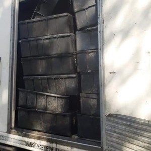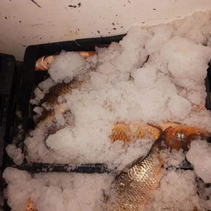 Inspeccionando el habitáculo de carga, se constata que éste se hallaba cargado de cajones plásticos típicos para el depósito de pescados vacíos y en su extremo más próximo a la cabina, cubiertos por estos cajones vacíos, ocultos a simple vista, se hallaron 250 cajones de igual a los descriñtos, conteniendo en su interior un total de 9.000 kgs. de carpas recientemente pescadas.