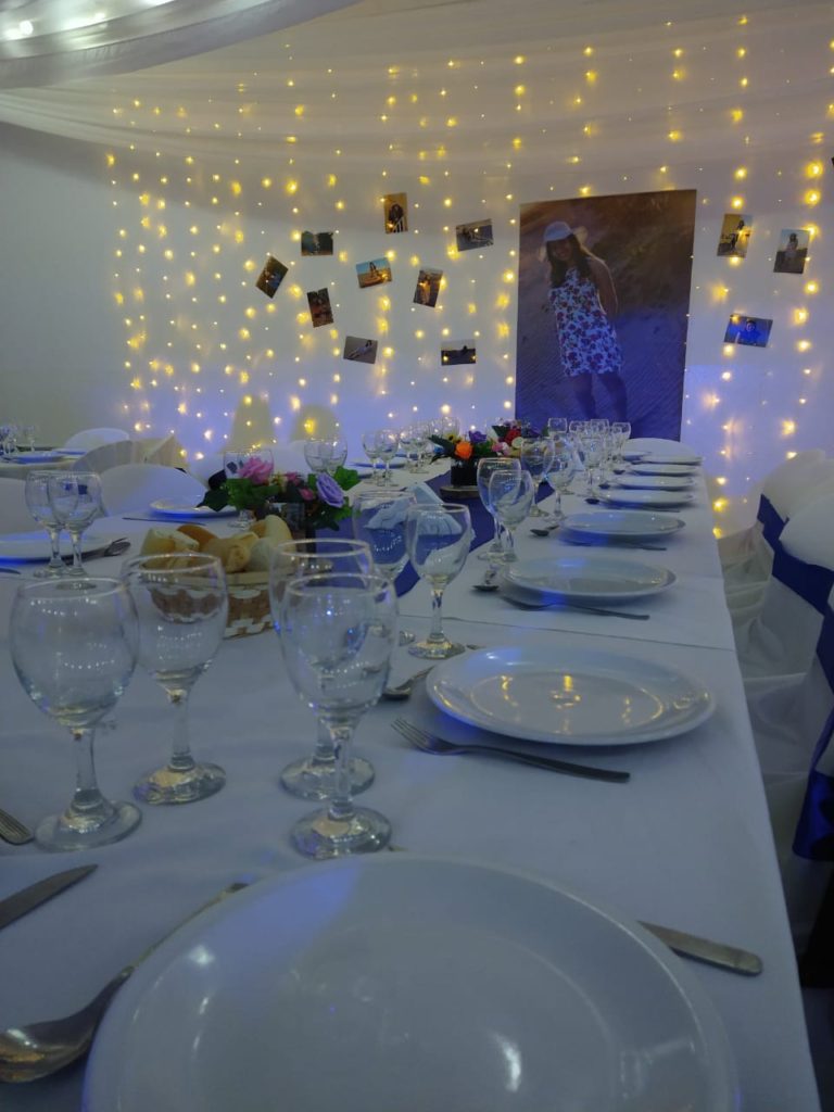 Su estructura de tarjeterías, DJ, luces, mozos, comida,