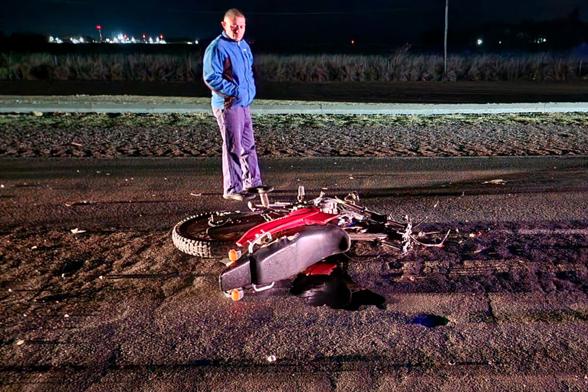 El trágico siniestro vial tuvo lugar minutos antes de las 6:00 horas, cuando una motocicleta Motomel Skua 150 cc y un Renault Megane colisionaron de manera frontal. El conductor de la motocicleta murió instantáneamente en el feroz impacto.