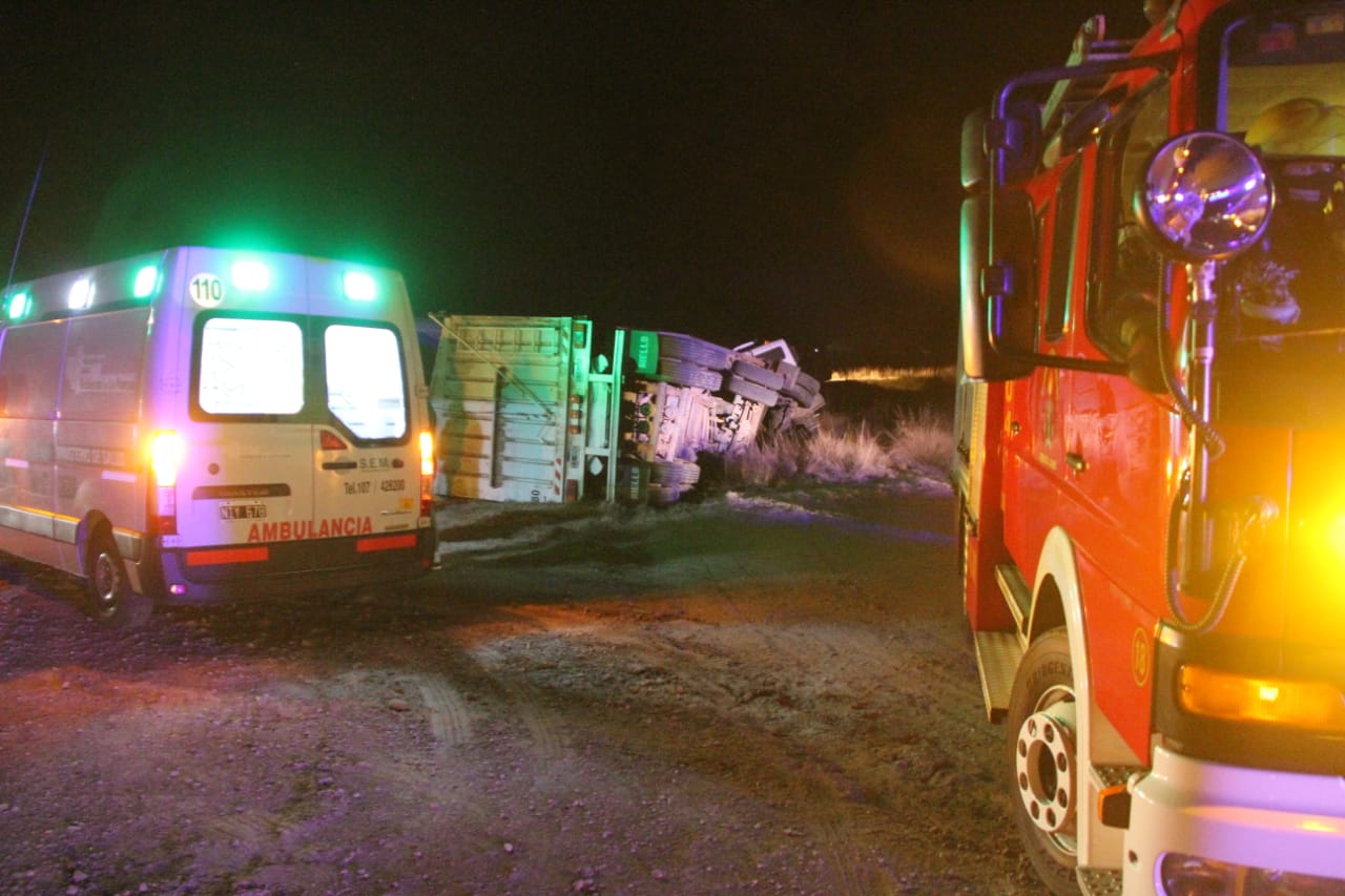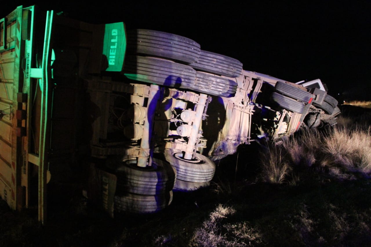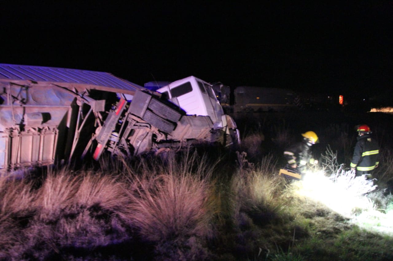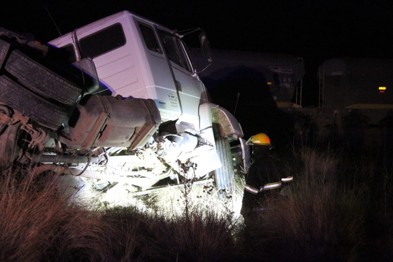 En la noche del jueves se produjo un accidente de tránsito en la curva de Trebolares cuando un camión hizo una maniobra tras divisar el tren y terminó volcando.