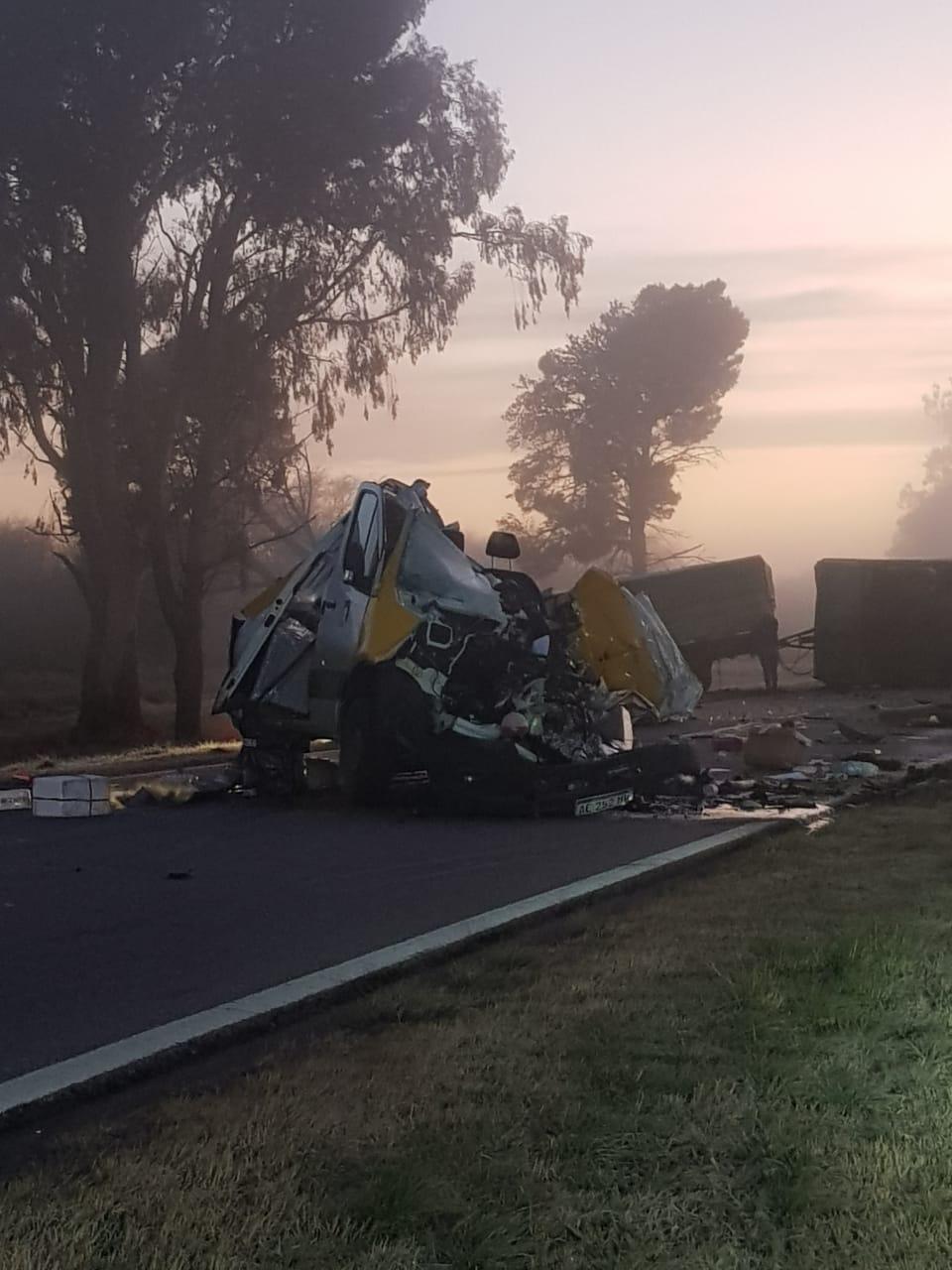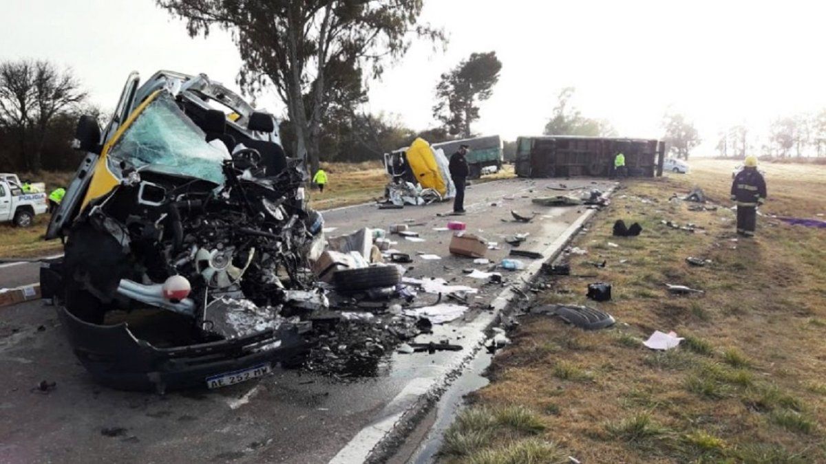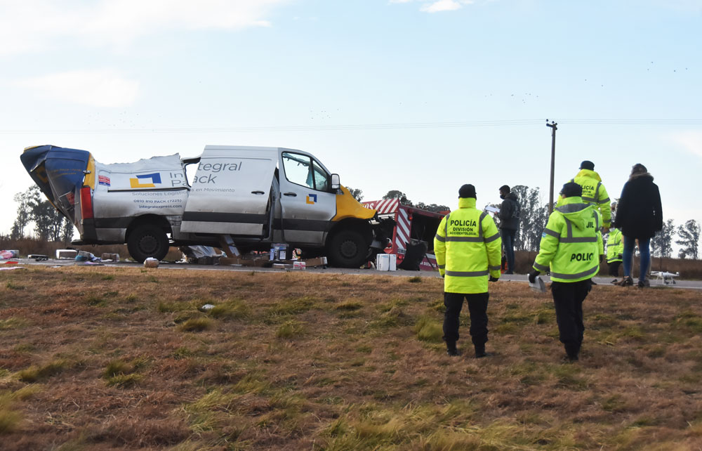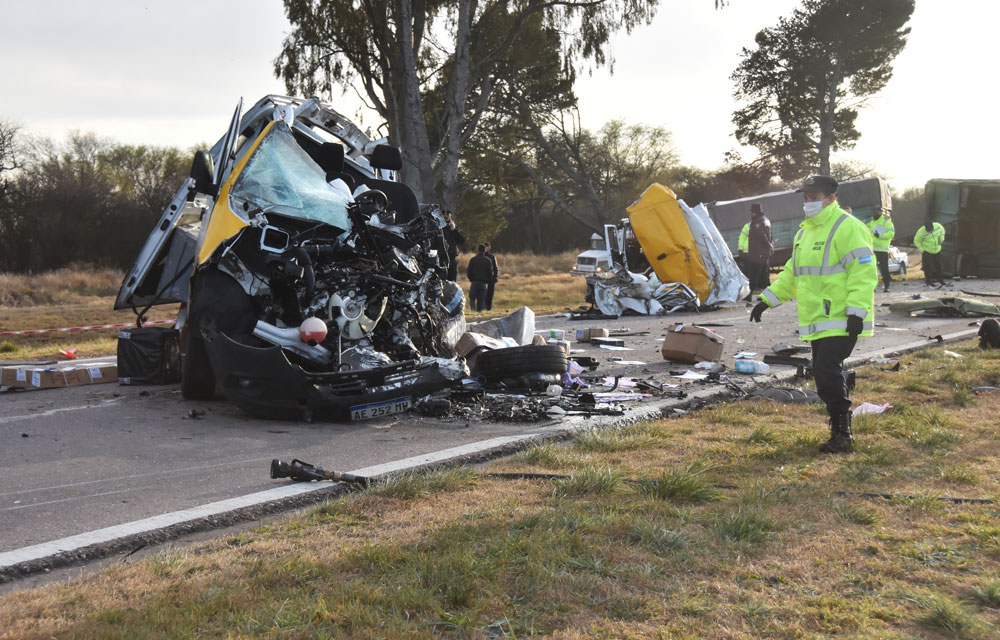 La violencia del impacto fue de tal magnitud que el utilitario quedó destrozado, en tanto que el acoplado del camión volcó sobre la cinta asfáltica, lo que provocó que la ruta fuera cortada por la policía, mientras en el lugar también trabajaban los bomberos.