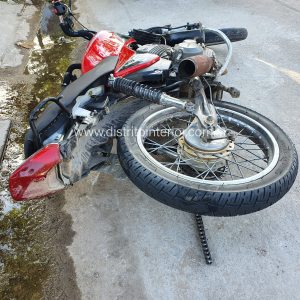 Dos sujetos que circulaban en moto, una 150 cc. con escape adulterado, se cayeron frente a la comisaría, cuando personal de ésta intentó asistirlos uno de ellos sacó un cuchillo e atacando a los uniformados, mientras que el otro se daba a la fuga por la calle Moreno en contramano, principal arteria de la ciudad, en contramano.