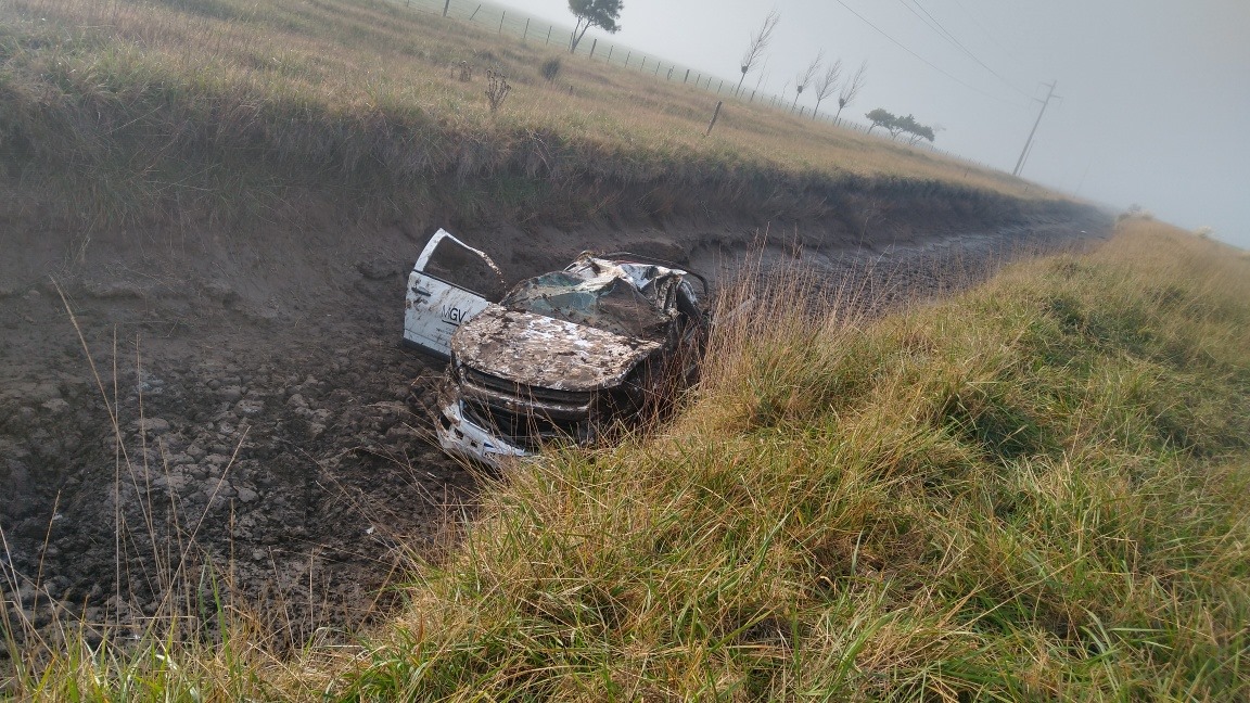 Eso sí, la camioneta Chevrolet S-10 quedó completamente destruida tras volcar y finalizar en un zanjón sin agua a la vera dela ruta.