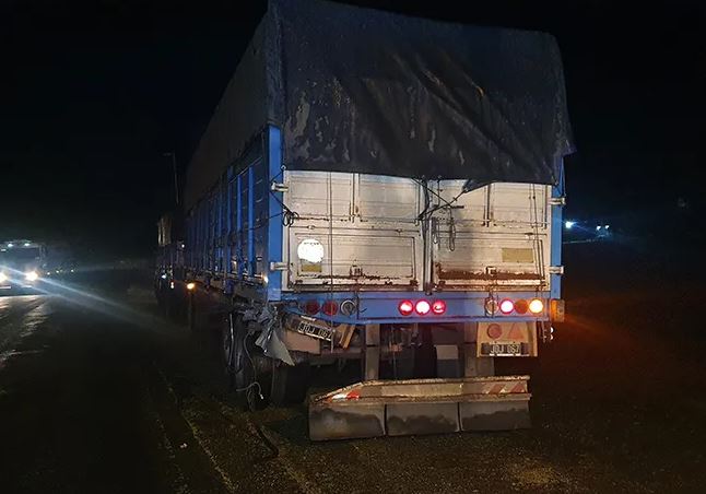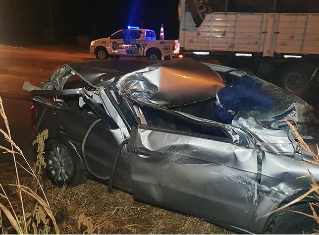 Un automóvil Volkswagen Gol en el que se movilizaba una pareja de Trenque Lauquen, con una perra manto negro a bordo a la que al parecer trasladaban para hacerla servir, colisionó de atrás violentamente contra el acoplado que tiraba un camión Iveco, perteneciente a una empresa de General Villegas.